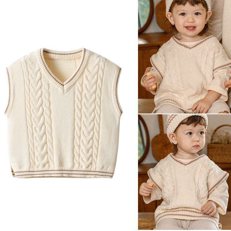Children's vest 2024 spring new Korean style twist sweater baby versatile loose V-neck sweater vest