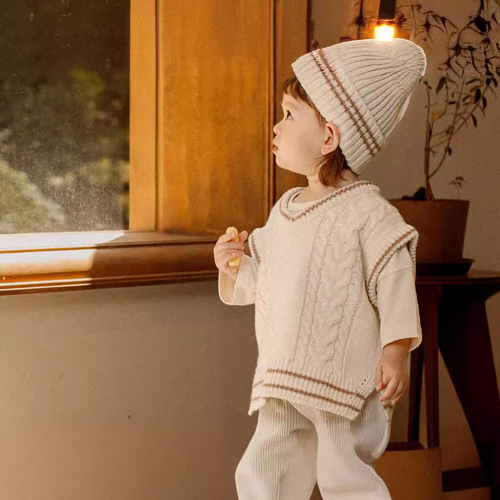 Children’s vest 2024 spring new Korean style twist sweater baby versatile loose V-neck sweater vest