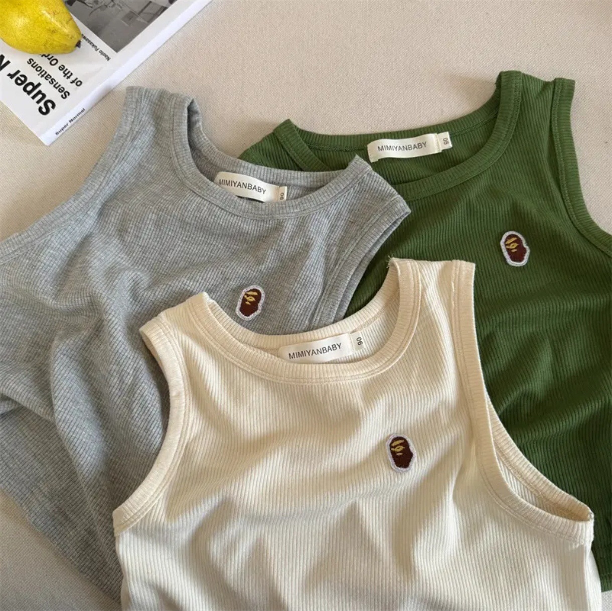 | nameOriginal | Children's Vest 2024 Summer Sleeveless T-Shirt for Boys and Girls Baby Solid Color Embroidered Top Stretch Rib |