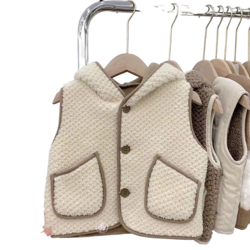 Children’s Vest Autumn and Winter Lamb Velvet Hooded Vest Trendy Childhood Vest