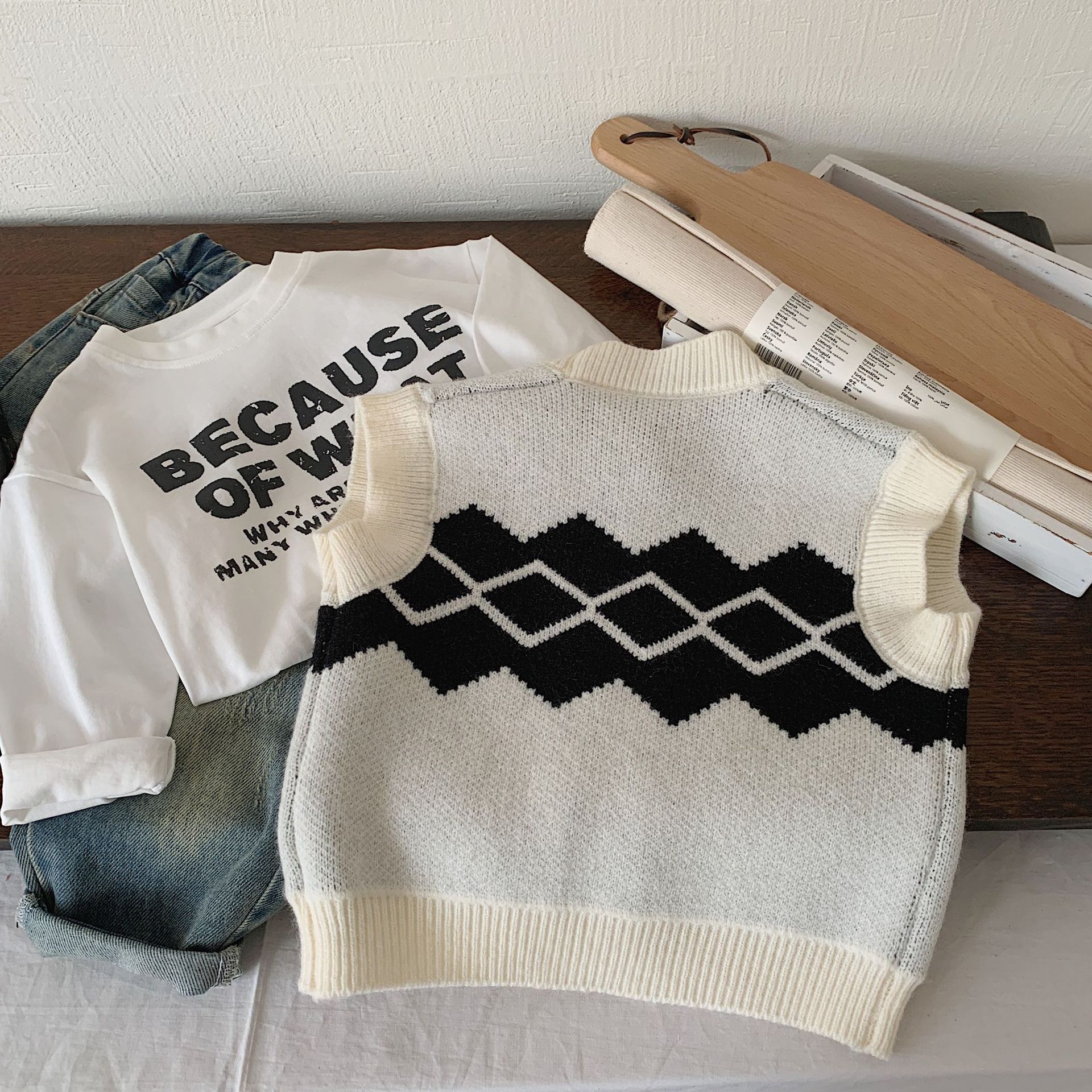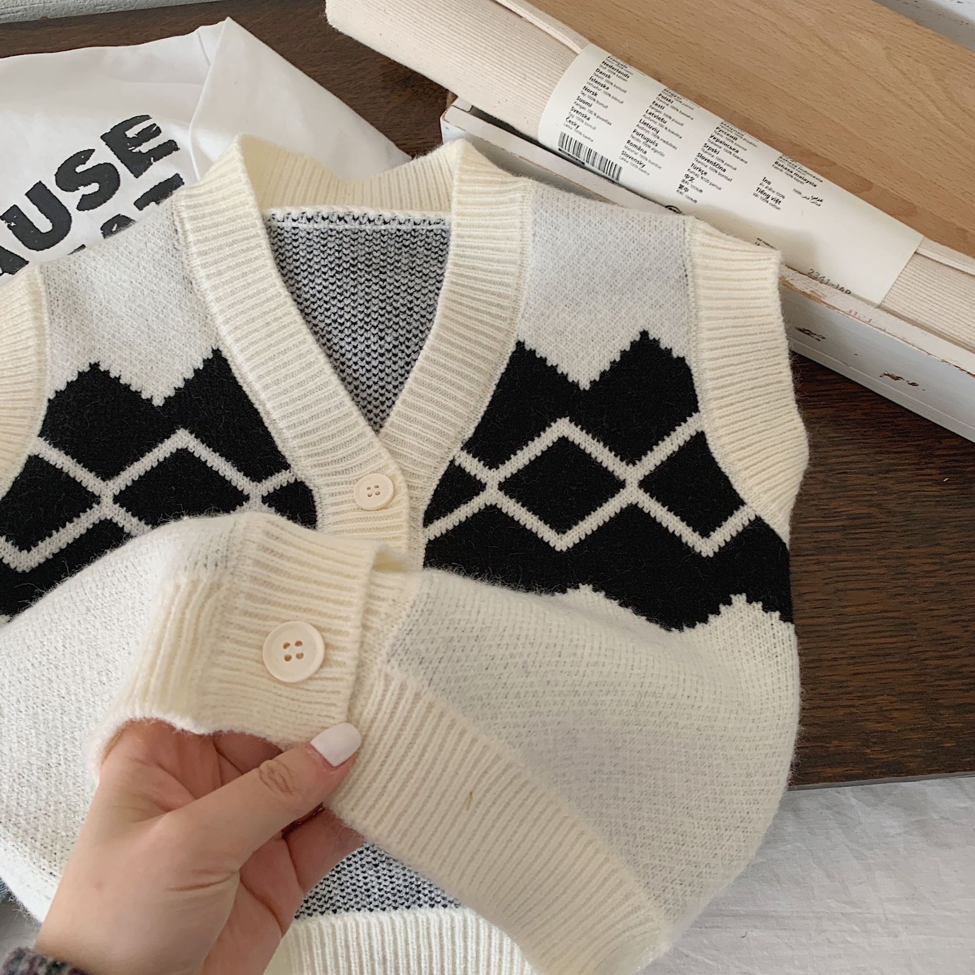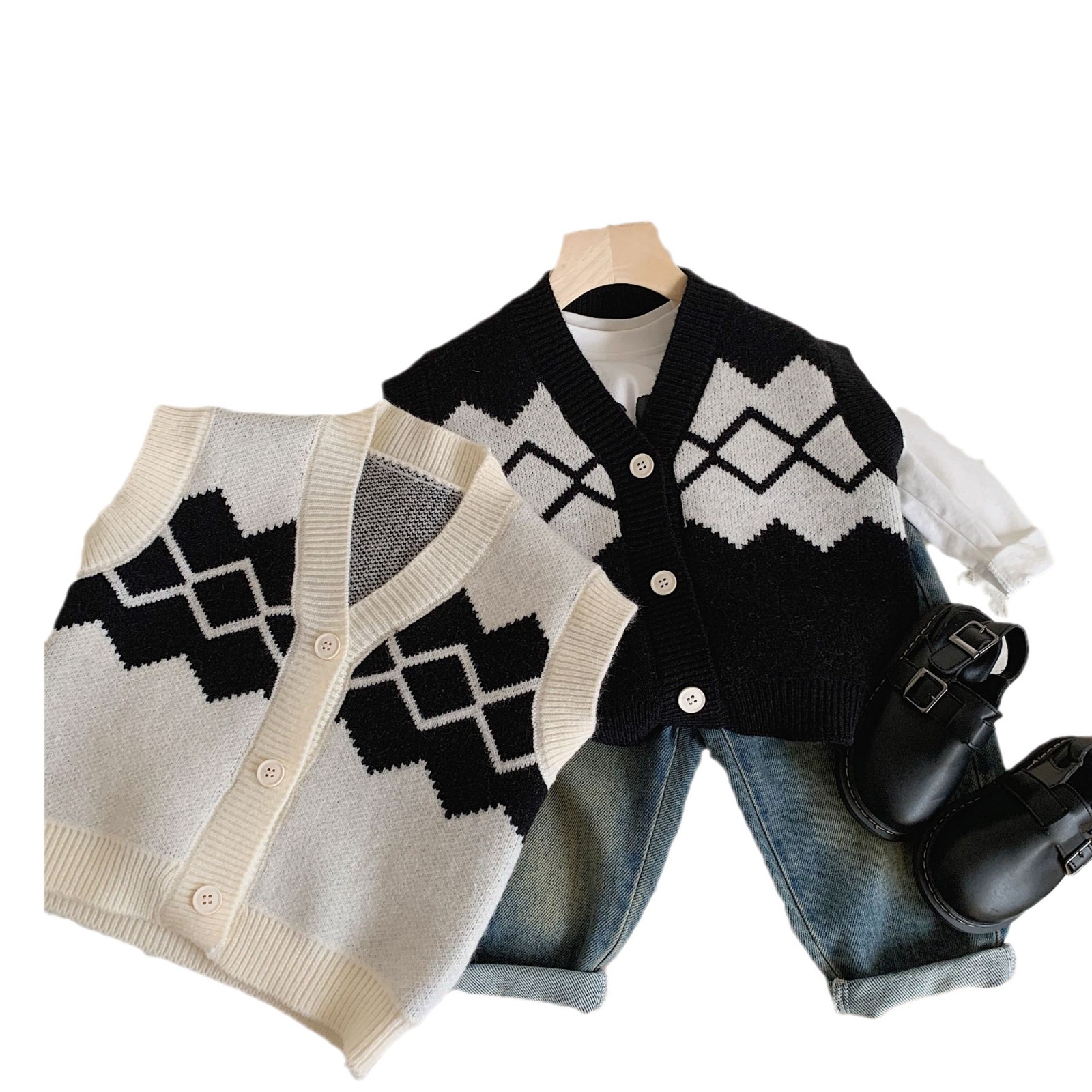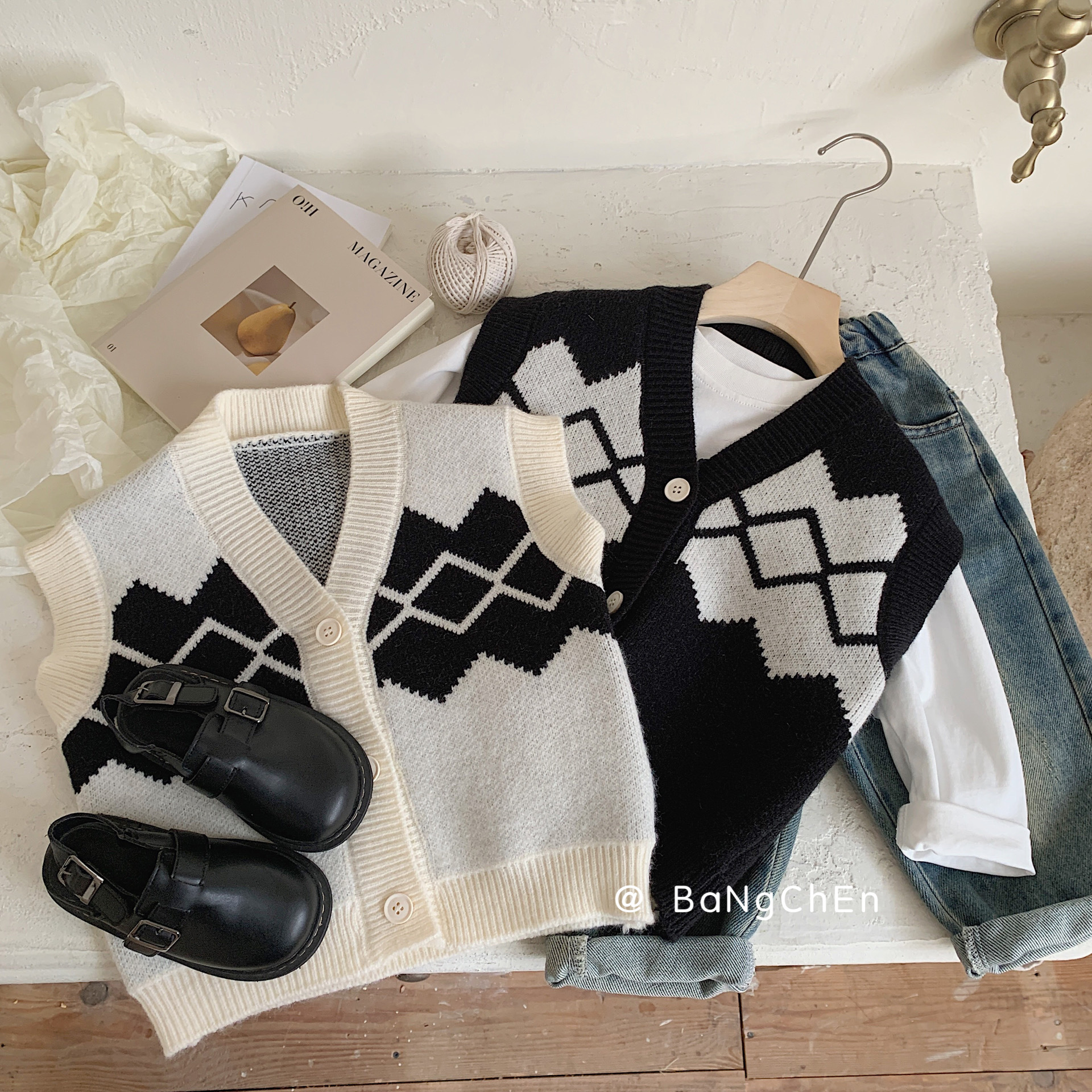 | nameOriginal | Children's vest Bangcheng 2024 spring new children's clothing rhombus cardigan boys' V-neck sweater vest trendy MY0004 |