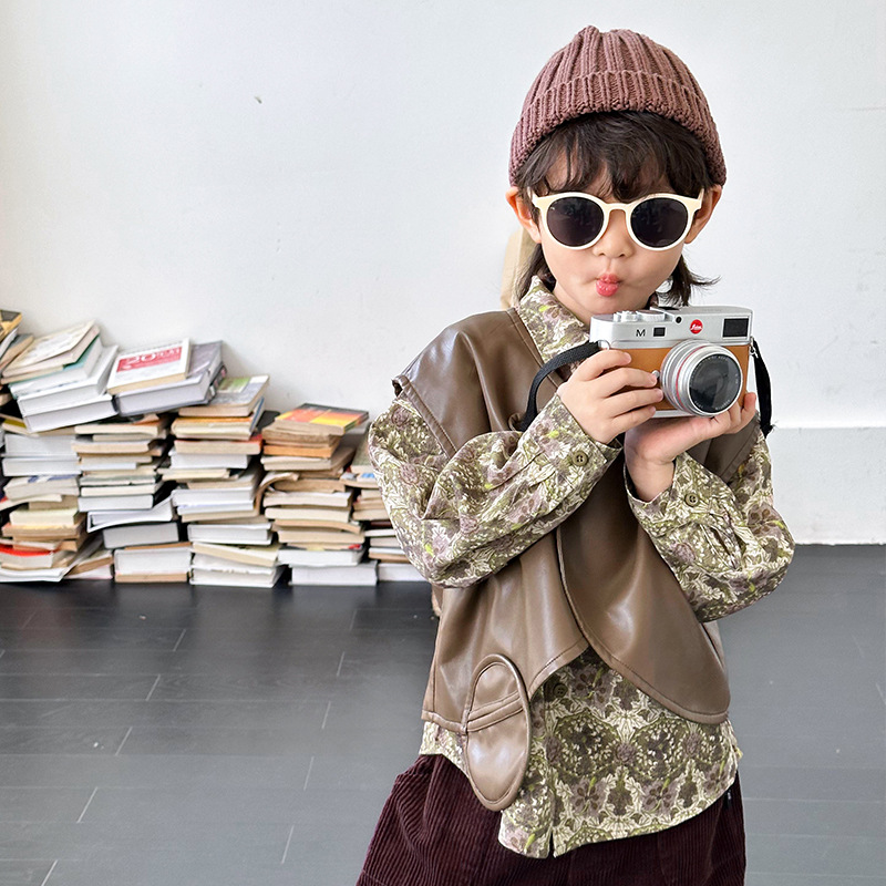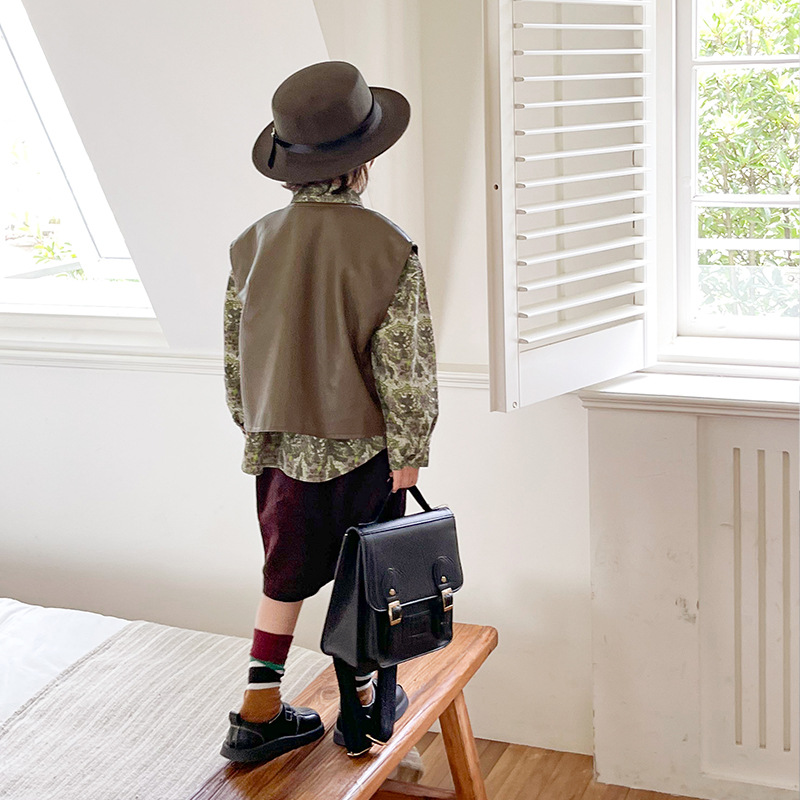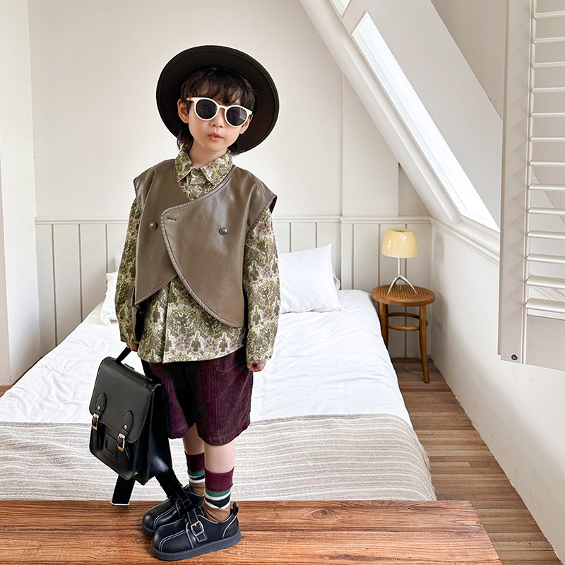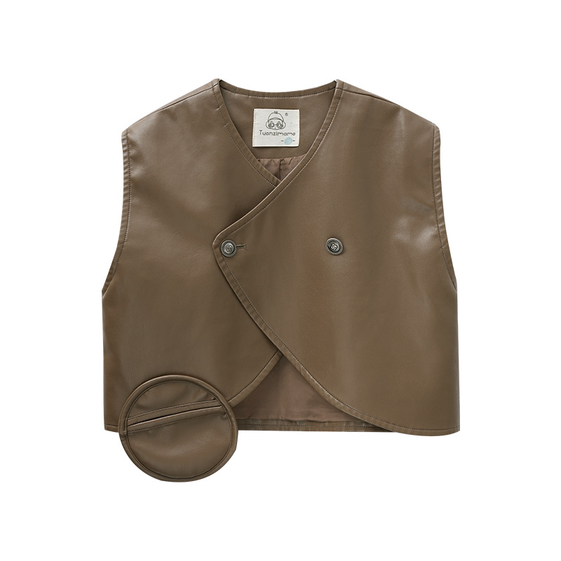 Children’s vest boys’ spring handsome all-match waistcoat trendy boys and girls New Korean style western style outer wear PU leather vest