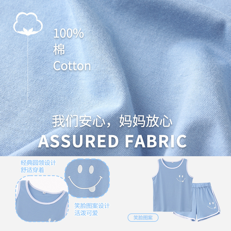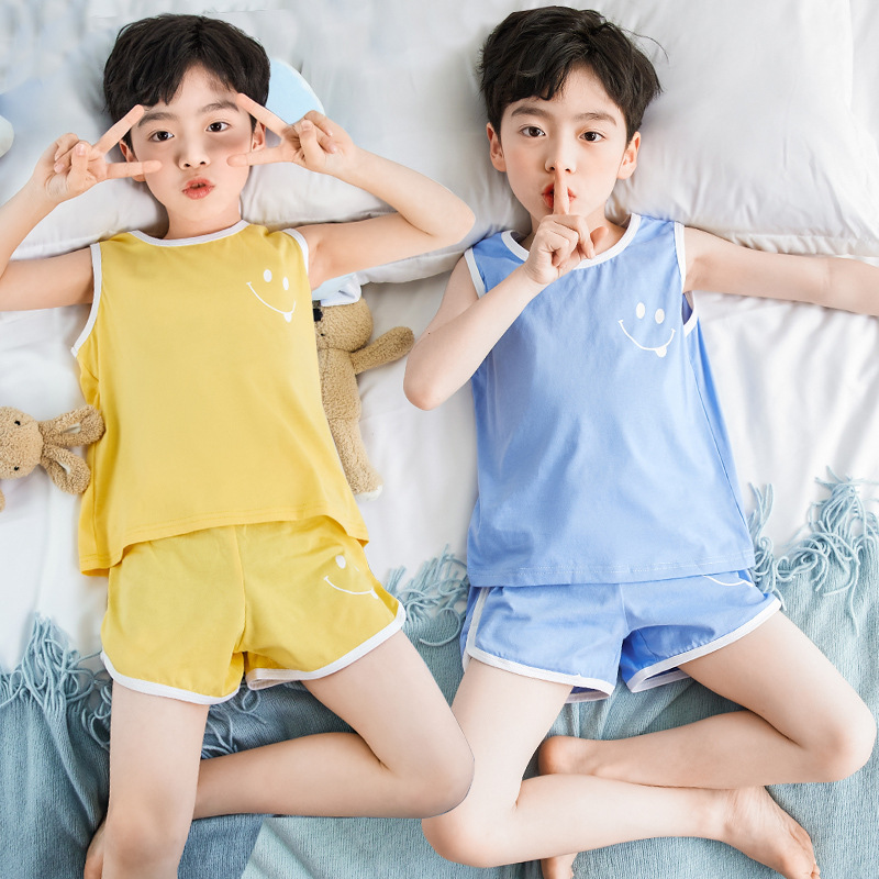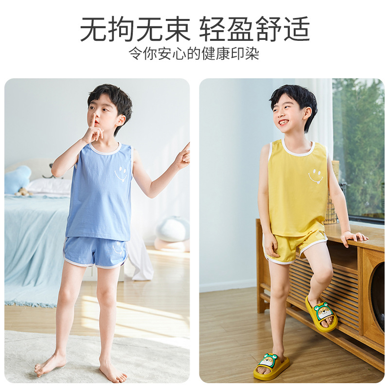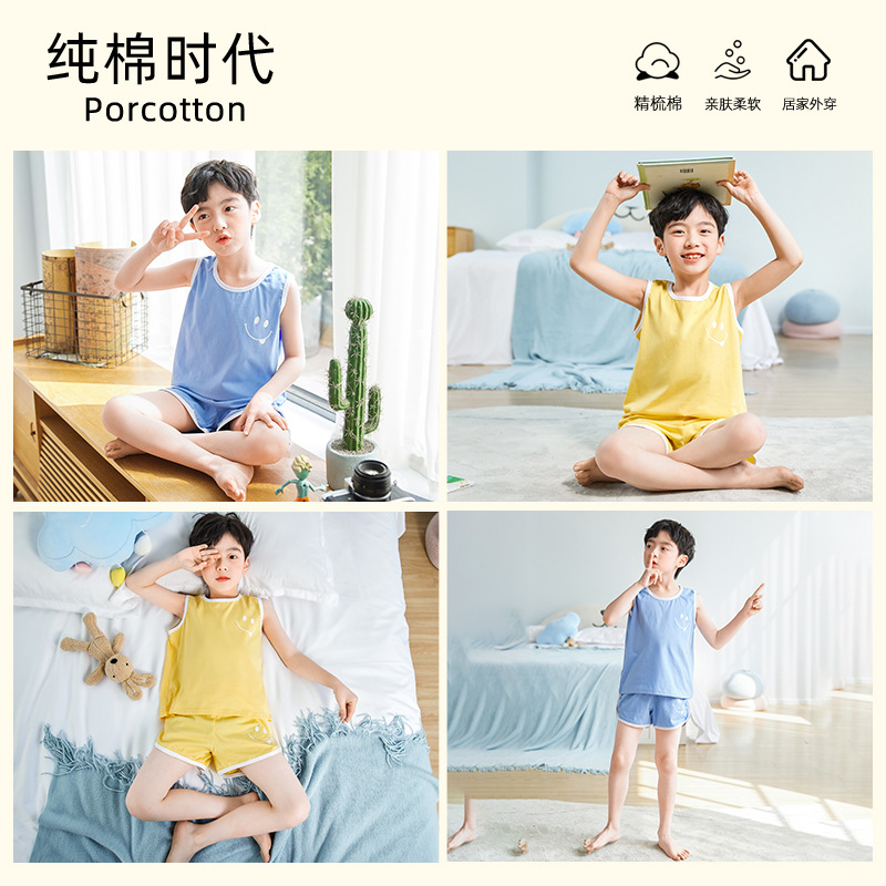 | nameOriginal | Children's Vest Set Boy's Pure Cotton Home Clothes Summer Thin Sleeveless Pajamas for Large Children Two-piece Fashionable Wholesale |