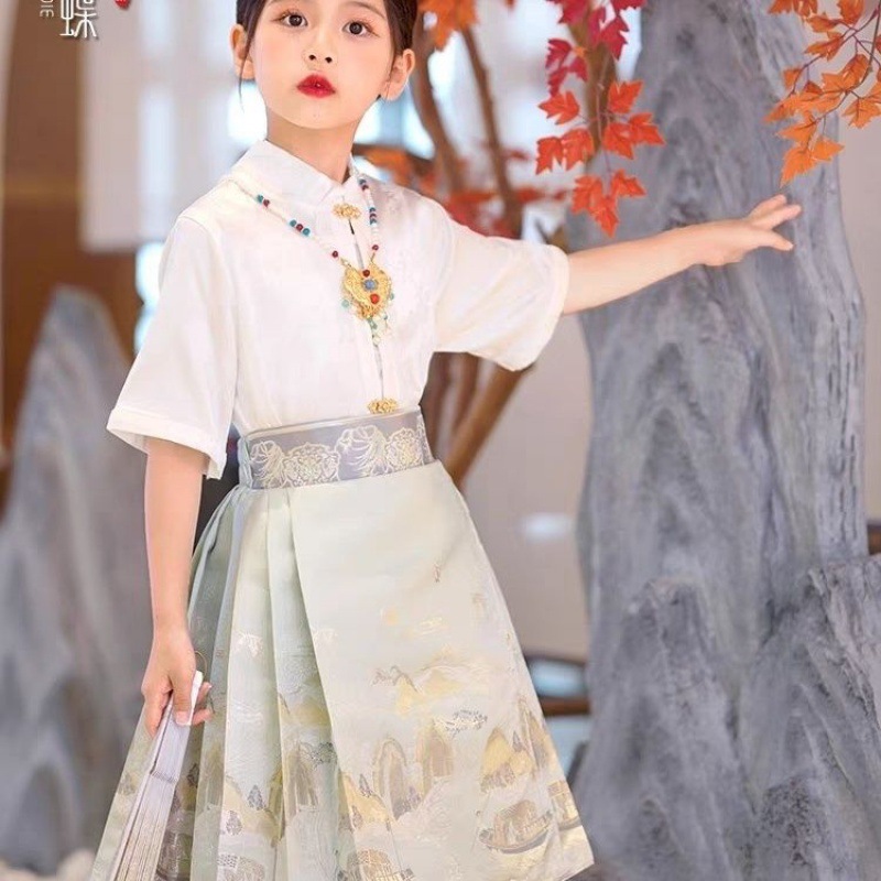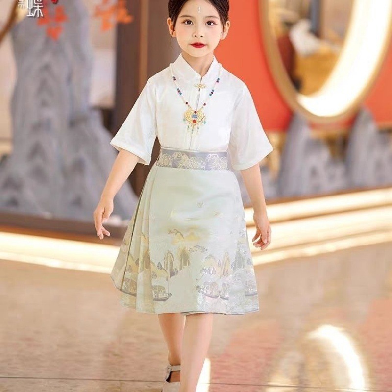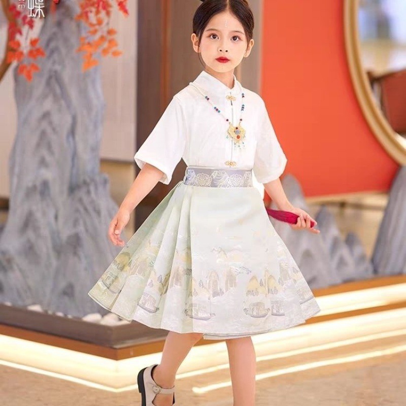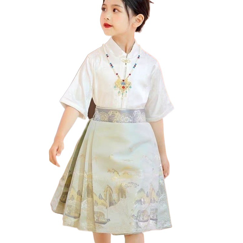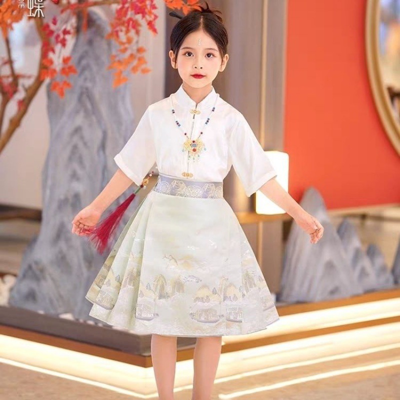 | nameOriginal | Children's vest skirt high-end green Hanfu suit summer thin girl's Ancient Costume National style Tang suit daily skirt |