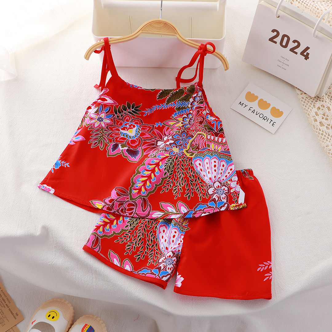 | nameOriginal | Children's Vest suit Boys and Girls Summer Thin Cotton Silk Floral Sling Shorts Baby's Cute Costclothes |