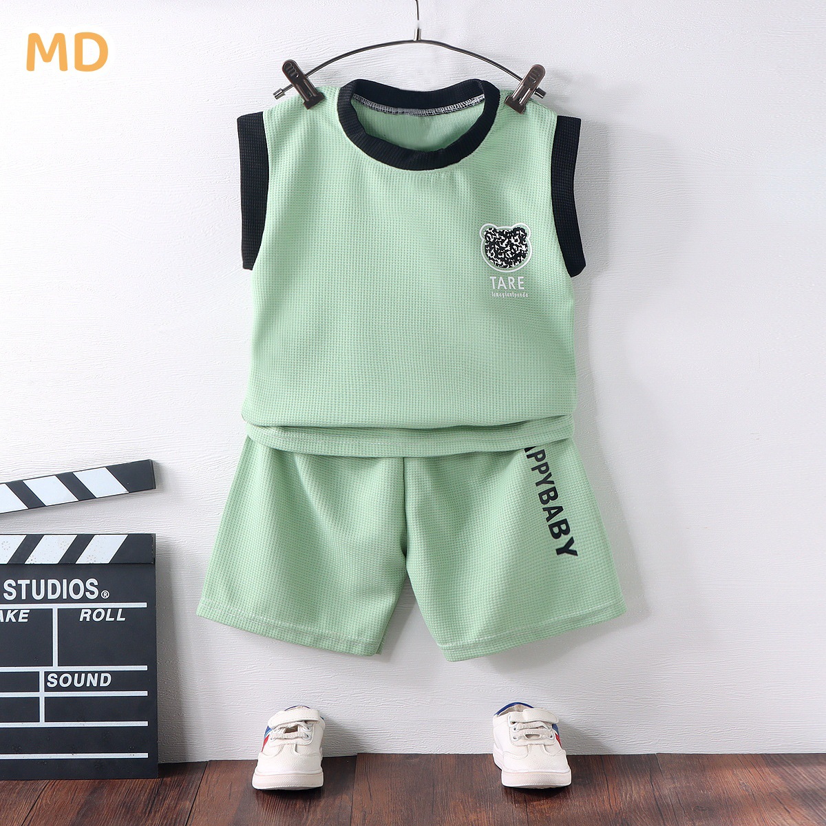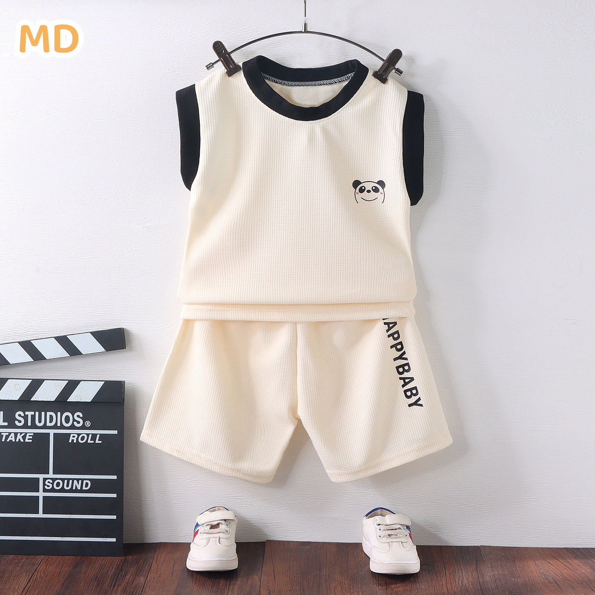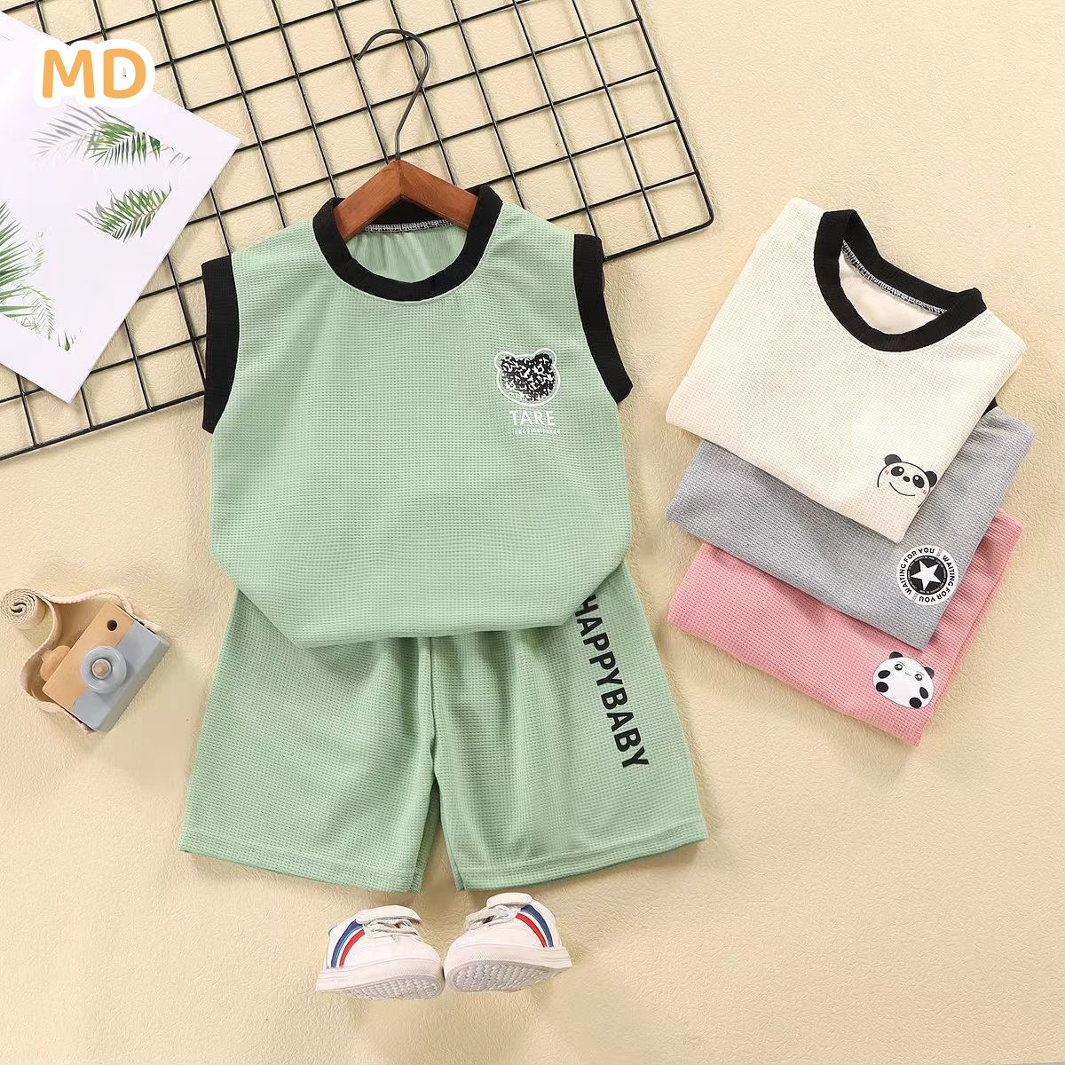 Children’s Vest suit New Waffles Stylish Sleeveless Two-Piece Fashionable Outfit Fashionable Korean Style Student Clothes