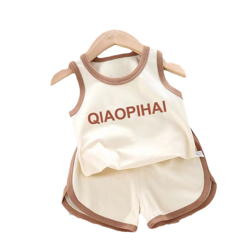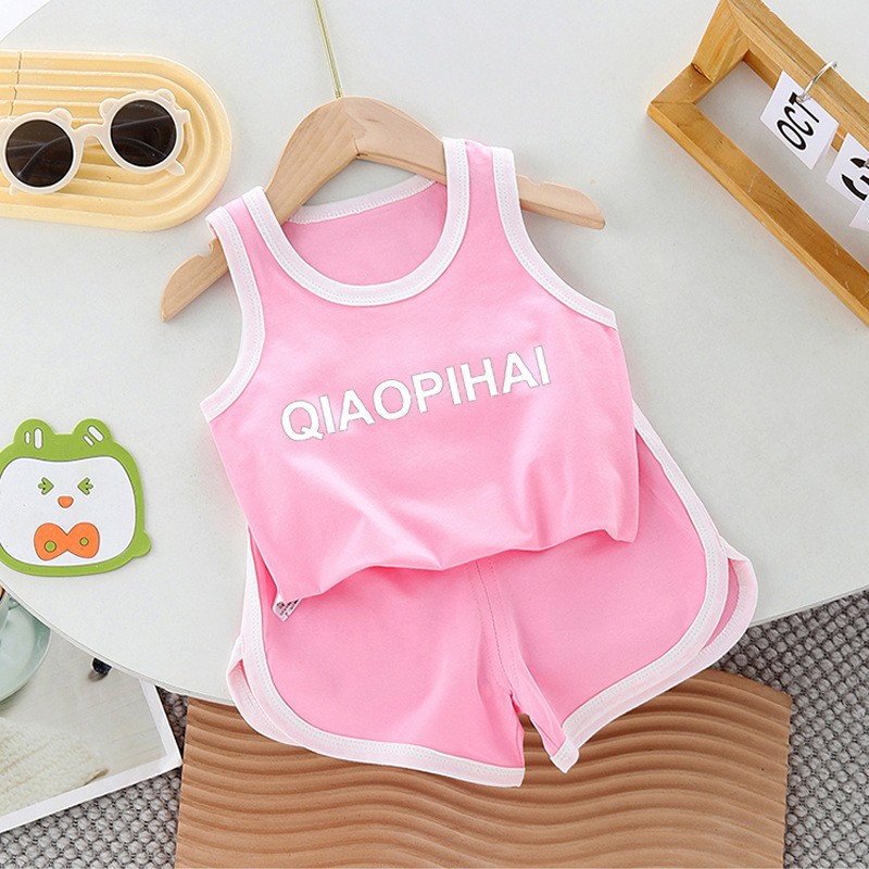 Children's vest suit summer loose boys' and girls' shorts children's sports two-piece set solid color wholesale