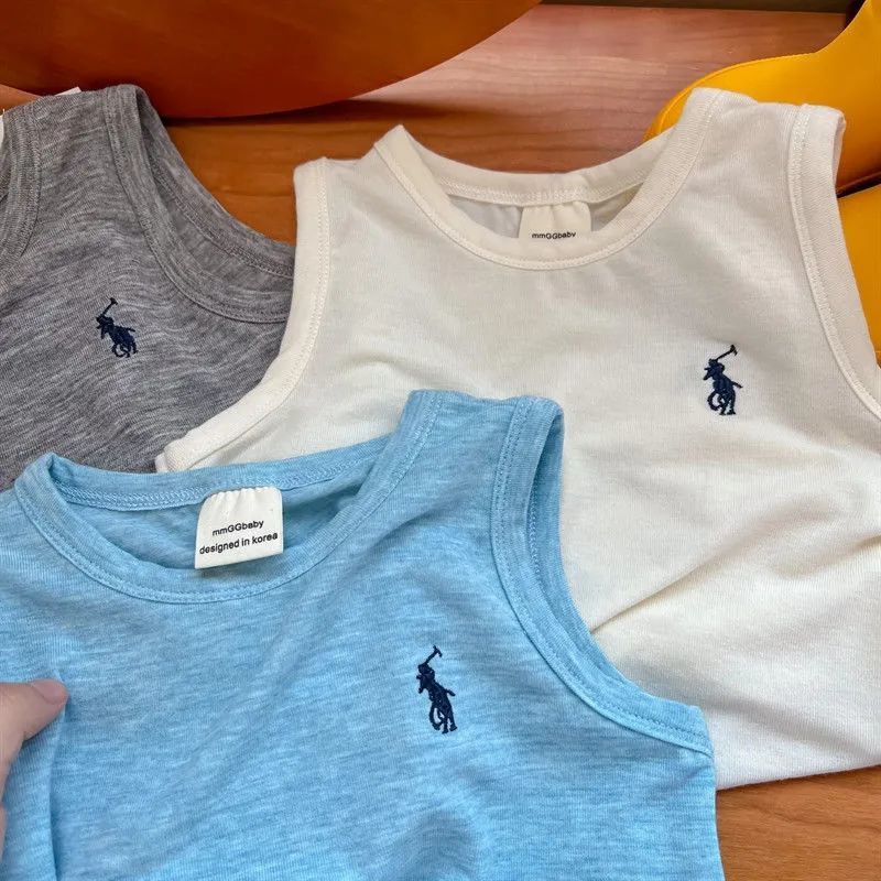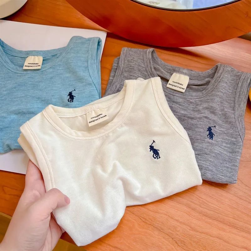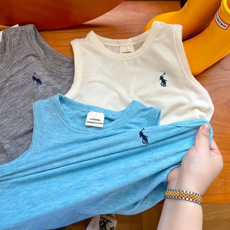 | nameOriginal | Children's Vest Summer Boys and Girls Embroidered Cotton Comfortable Mask Sleeveless T-shirt Baby Trendy Brand Solid Color Top Thin T |