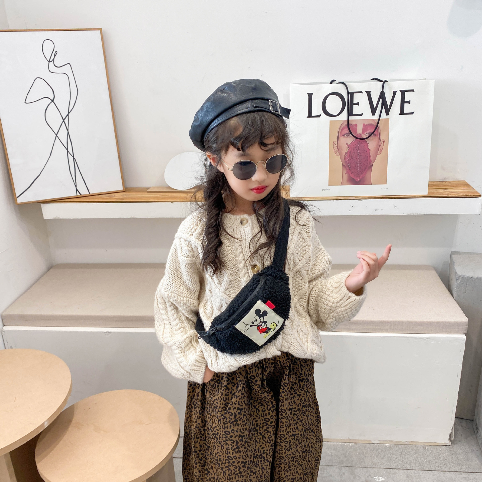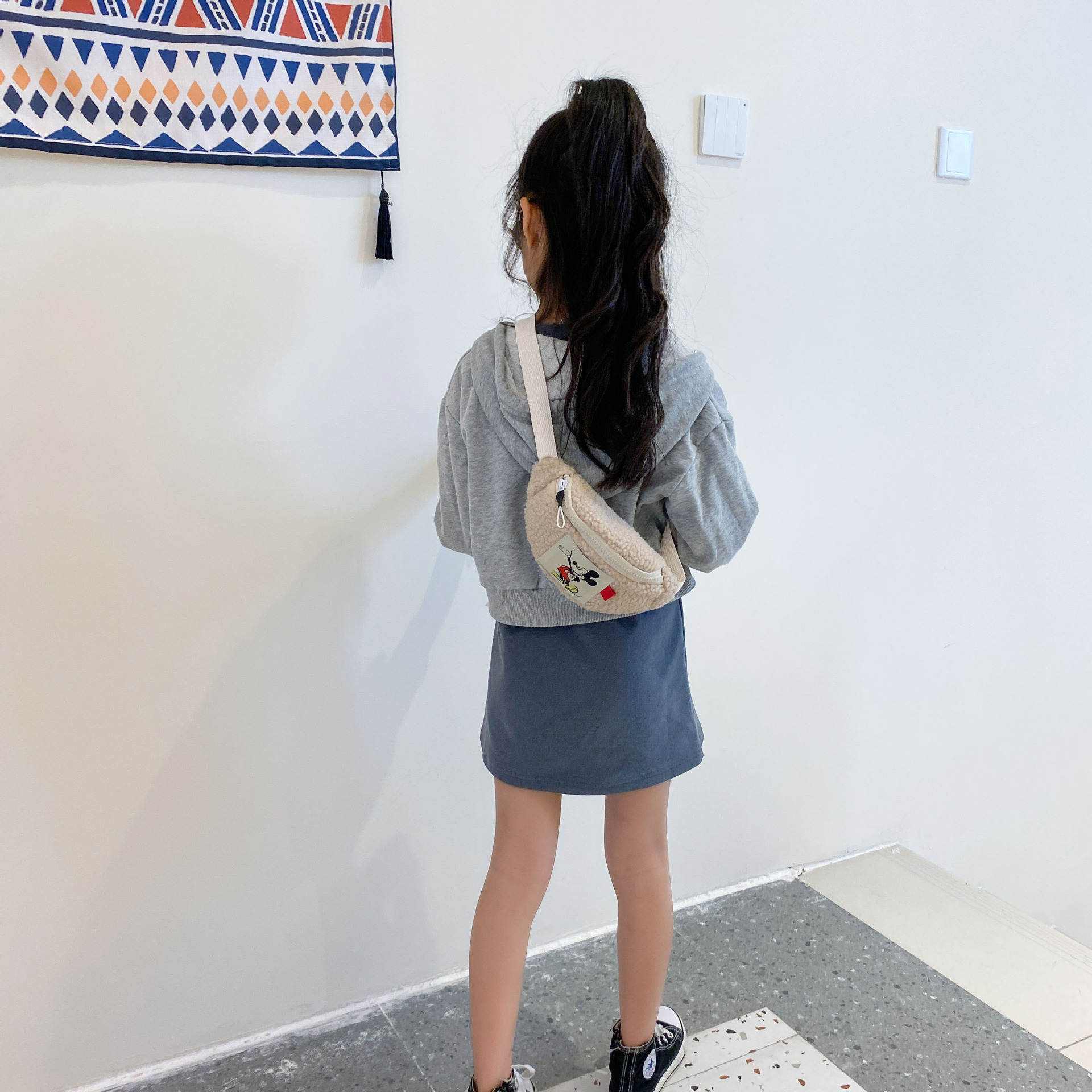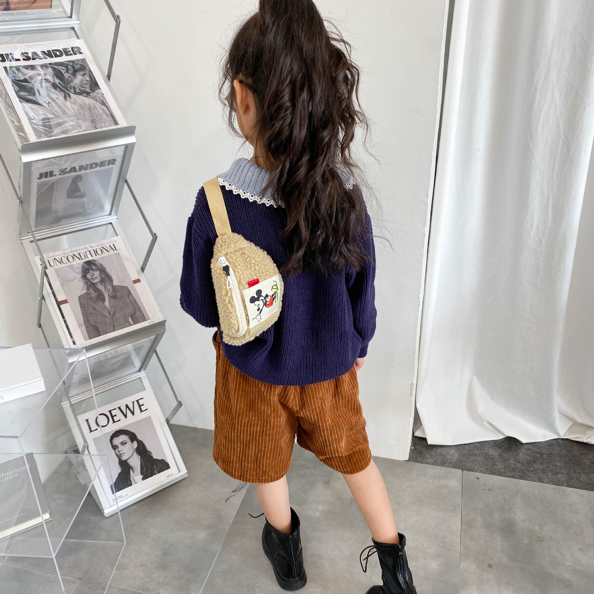 Children's Waist Bag 2023 Autumn and Winter New Lamb Wool Cartoon Cute Toddler Boys and Girls Western Style Popular Crossbody Chest Bag