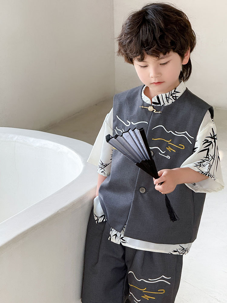 | nameOriginal | Children's waistcoat suit 2024 spring and summer new floating clouds embroidery tide fan boys June 1 flower girl dress a generation of hair |