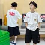 nameOriginal | Children's Wear 2024 Summer Leather Brand Pocket Defined Ancara Red Print Flower Trendy Cotton Children's Short-sleeved T-shirt |
