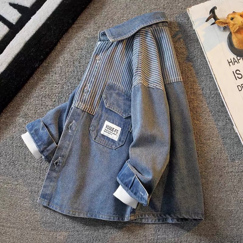 Children's Wear Boys Coat 2024 New Style Cool Cowboy Clothes Boys Spring and Autumn Children's Shirt