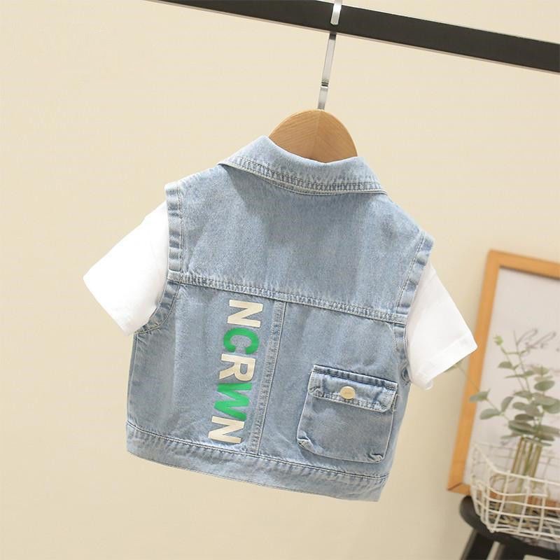 Children's Wear Boys Denim Vest 2024 Spring New Baby Stylike Waistcoat Children's Top