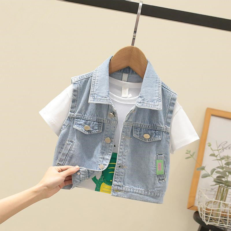 Children’s Wear Boys Denim Vest 2024 Spring New Baby Stylike Waistcoat Children’s Top