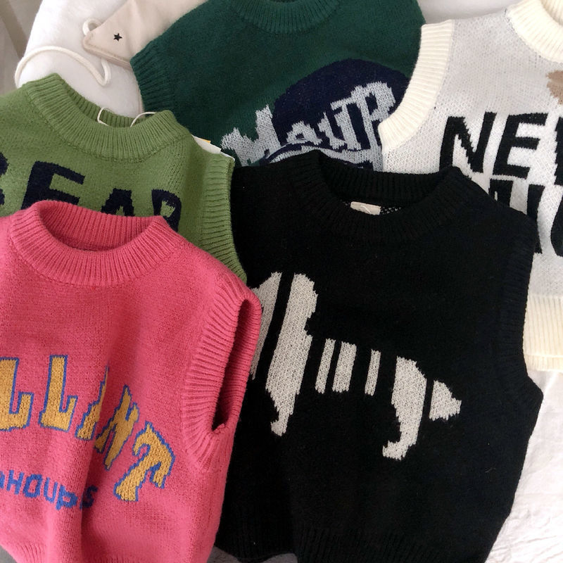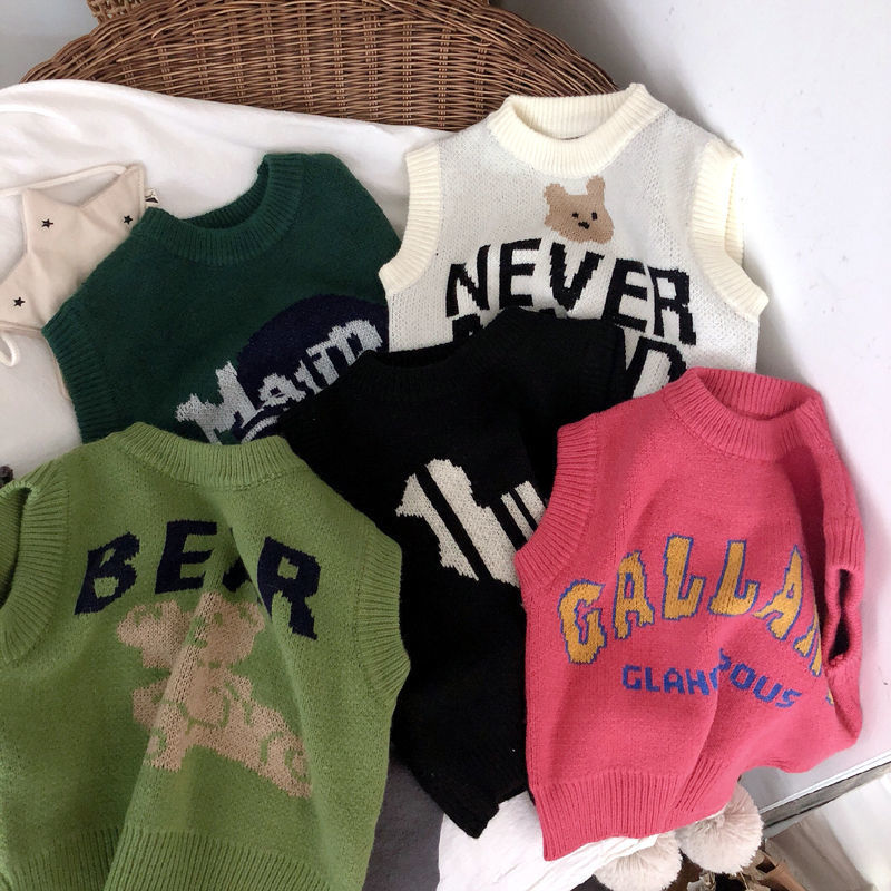 Children's Wear Boy's Knitted Vest Autumn and Winter New Korean Style Western Style Fashion Small and Medium-sized Children's Baby Sweater Jacket Washer