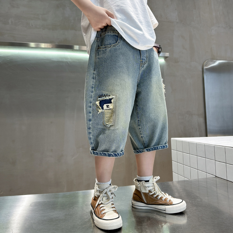 | nameOriginal | Children's Wear Boys Summer Shorts Pants 2024 New Mid-length Pants Thin Summer Trendy Jeans for Middle and Big Children |