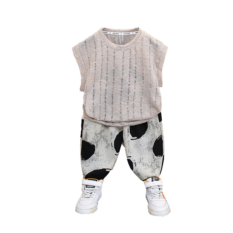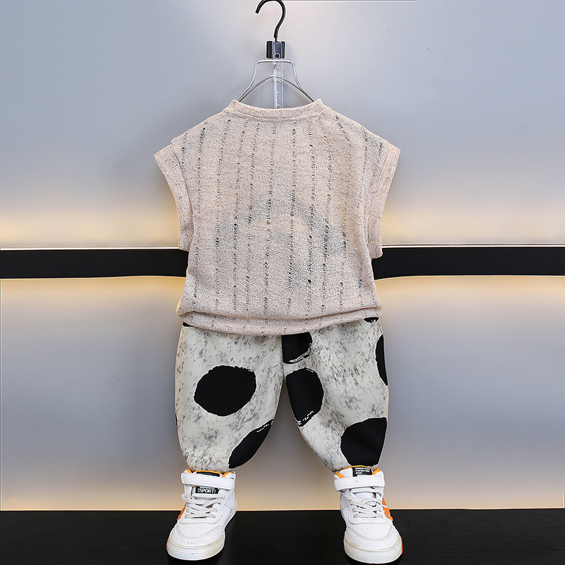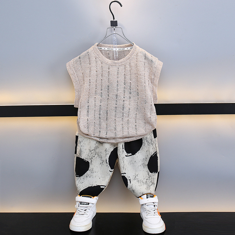 Children's Wear Boys Summer Wear suit 2024 New Sleeveless Summer Vest Fashionable Casual Children's Thin Two-piece Set