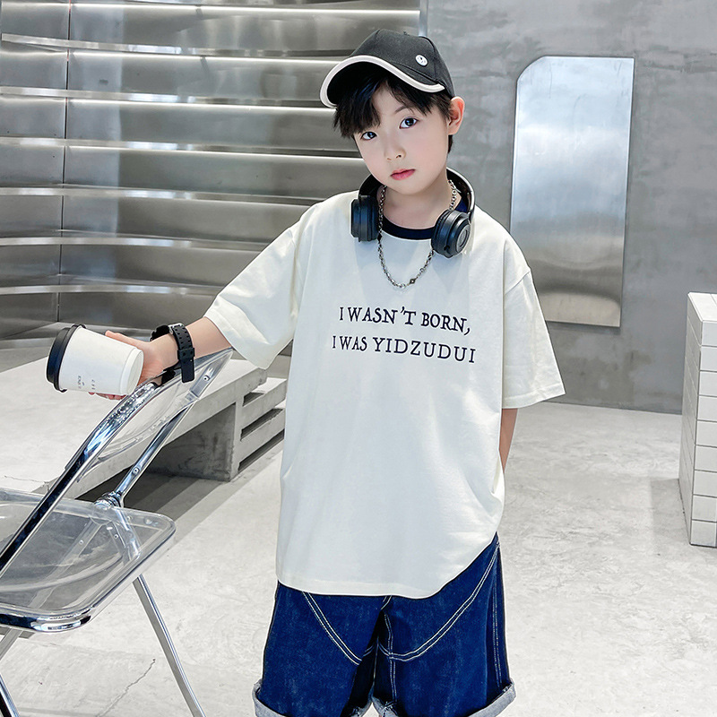 | nameOriginal | Children's Wear Boys' Summer Wear Thin Pure Cotton Short-sleeved T-shirt 2024 New Style Western Style All-match Printed Top for Middle and Large Children |
