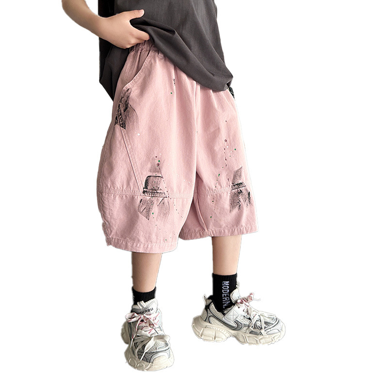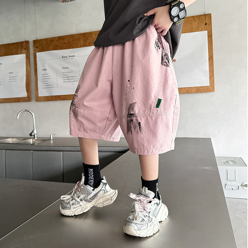 Children's Wear Boys' Summer Wear Thin Workwear Mid-length Pants New Style Big Children's Fashionable Puppy Handsome Ink Printed Half-length Pants