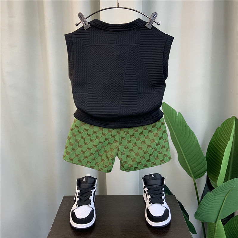 Children's Wear Boys' Vest suit 2024 New Children's Internet-famous Thin Clothes Children's Cool and Handsome Summer Two-piece Set