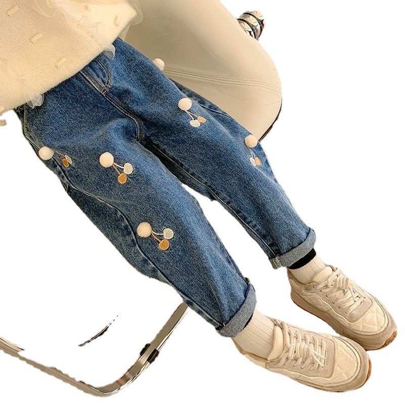Children's Wear Girls' Jeans Spring, Summer and Autumn New Western Style Middle and Big Children's Casual All-match Girl Baby Children's Long Pants