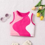 Children’s Wear Vest Children’s and Girls Summer Short Pit-stripe Printed Sleeveless Crewneck Knitted Vest Cross-border Amazon Clothing