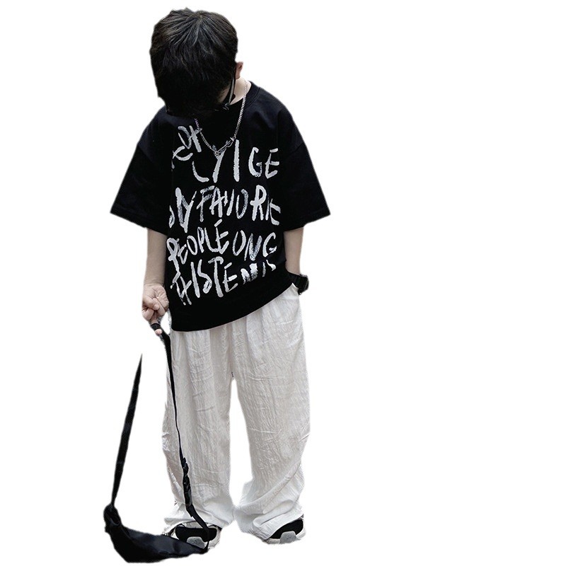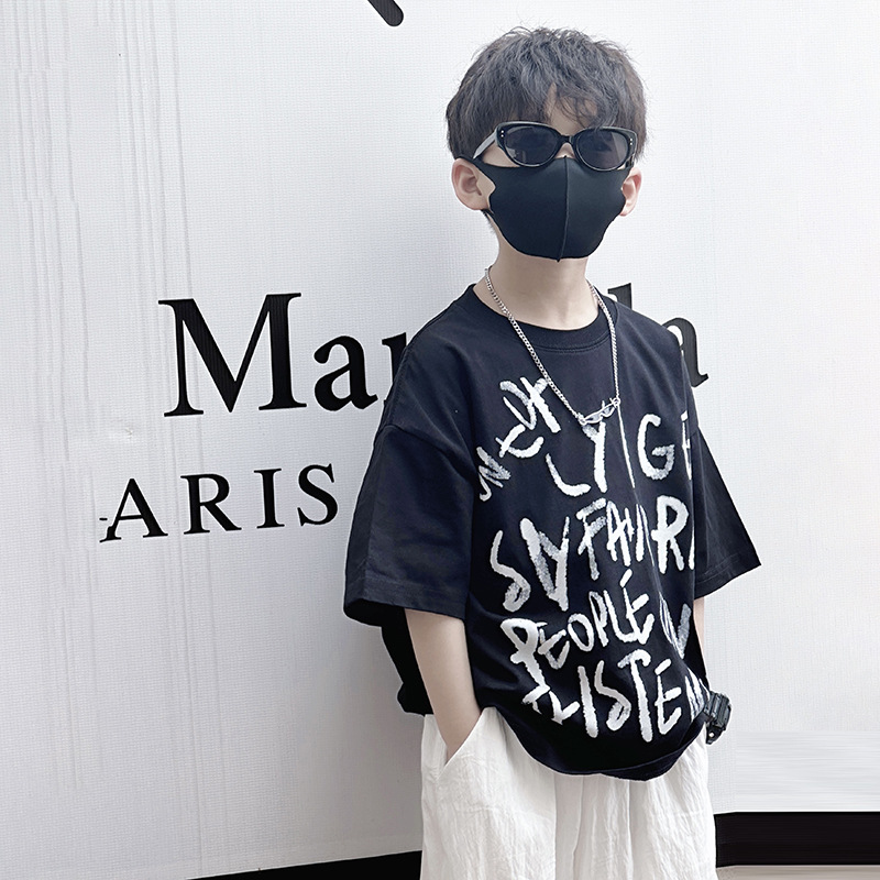 Children's Western Style Short-sleeved 2024 Summer New Boys' Letters Graffiti Summer Wear Korean Style Thin T-shirt Trendy