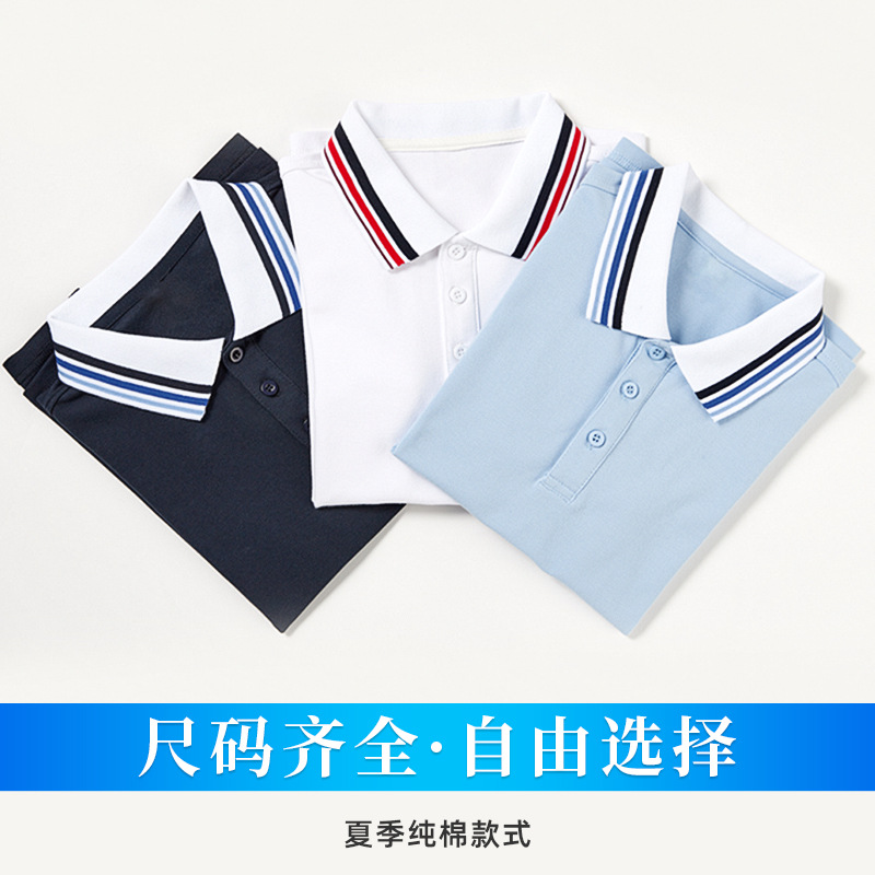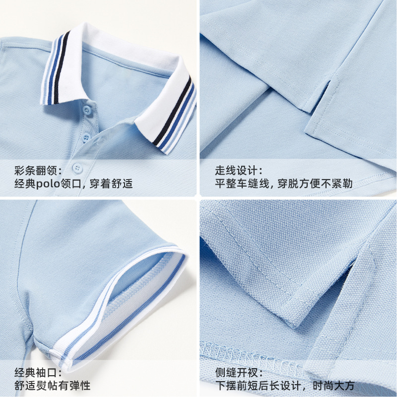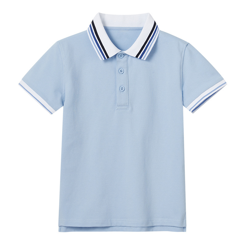 | nameOriginal | Children's white polo shirt light blue primary school uniform cotton lapel T-shirt summer short-sleeved |