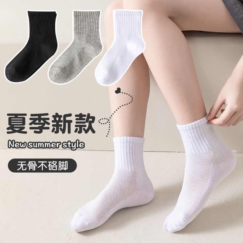 | nameOriginal | Children's White Socks Spring and Summer Boys and Girls Cotton Socks Mid-tube Socks Thin Mesh Students Middle and Large Children's White Socks |