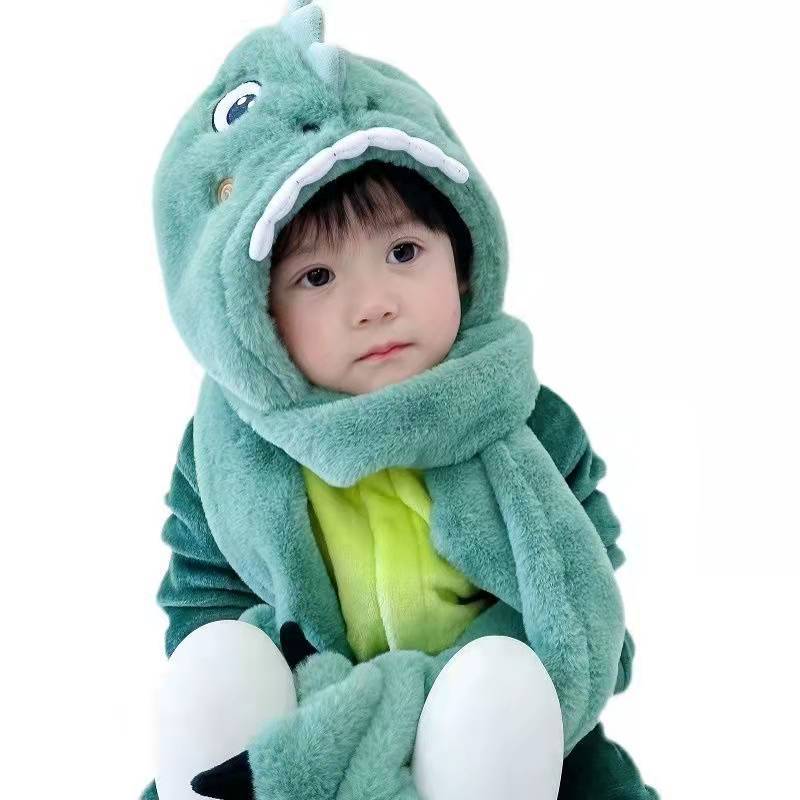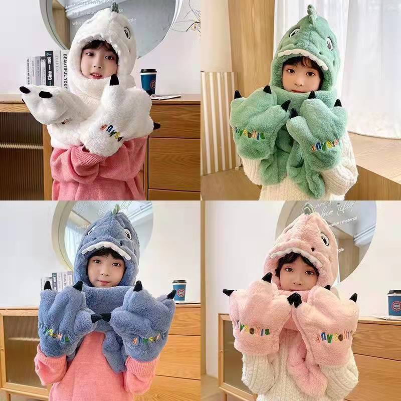 | nameOriginal | Children's winter hat scarf all-in-one Boys and Girls baby cute dinosaur warm plush padded gloves three-piece set |