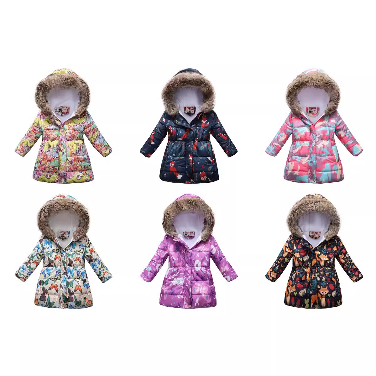 | nameOriginal | Children's winter New coat cotton-padded clothes European and American girls winter 6 color printing long wool collar hooded cotton-padded coat |