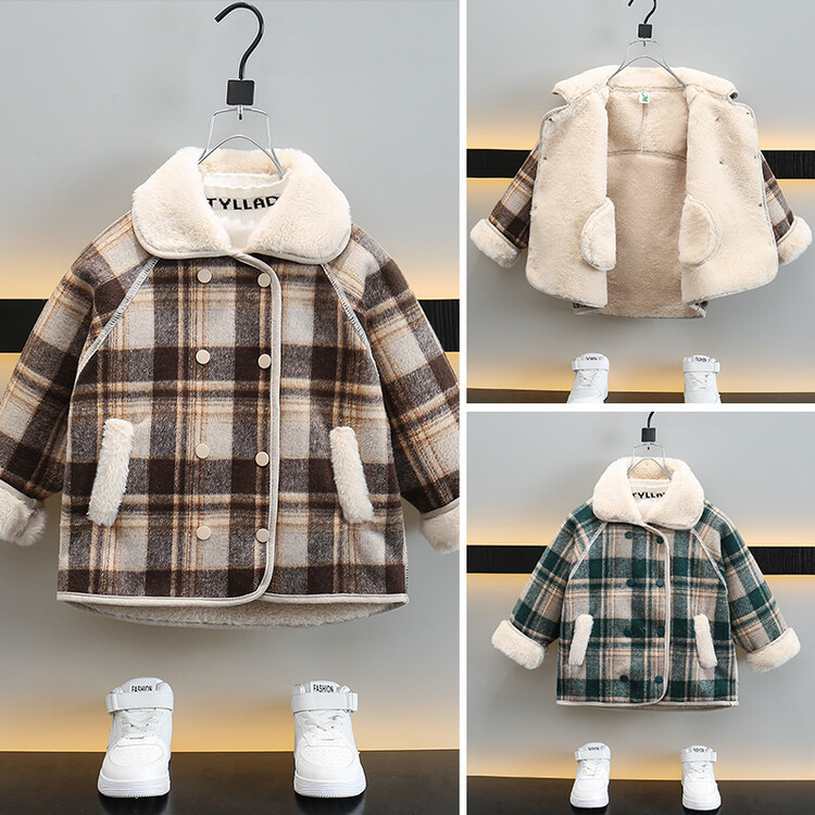 | nameOriginal | Children's Winter Plaid Double-breasted Woolen Sweater Jacket 2024 New Korean Style Fashion Girl's Tit Coat |