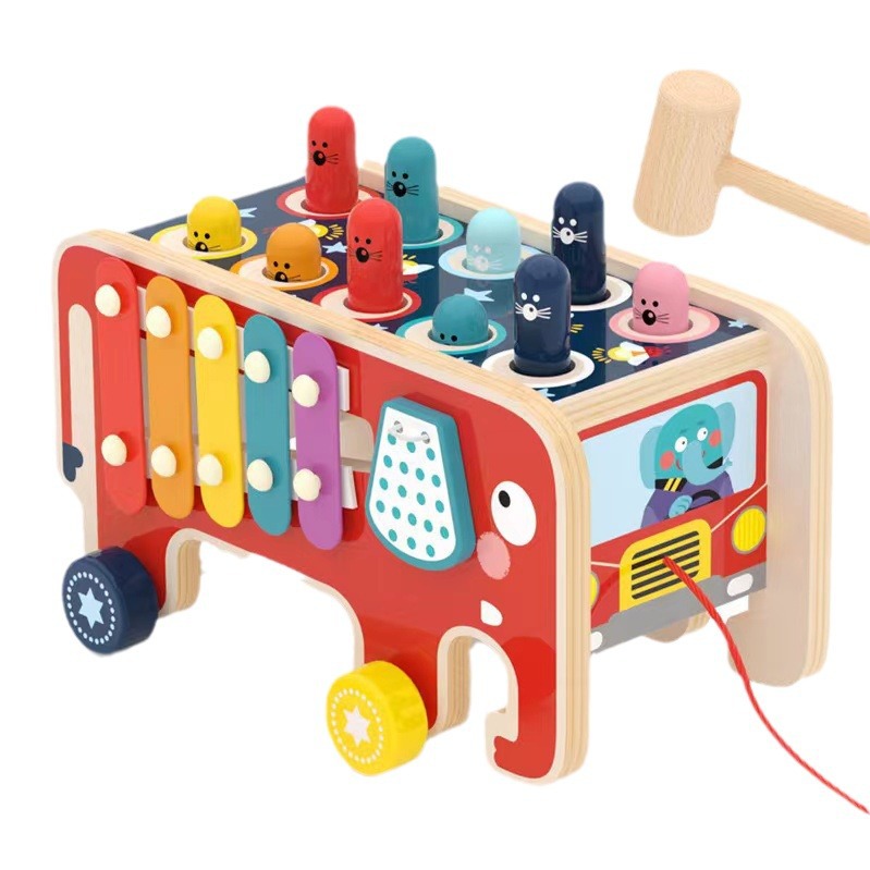 | nameOriginal | Children's wooden toy elephant dragging and knocking piano playing mole multi-functional educational early education tapping platform wood toy car |