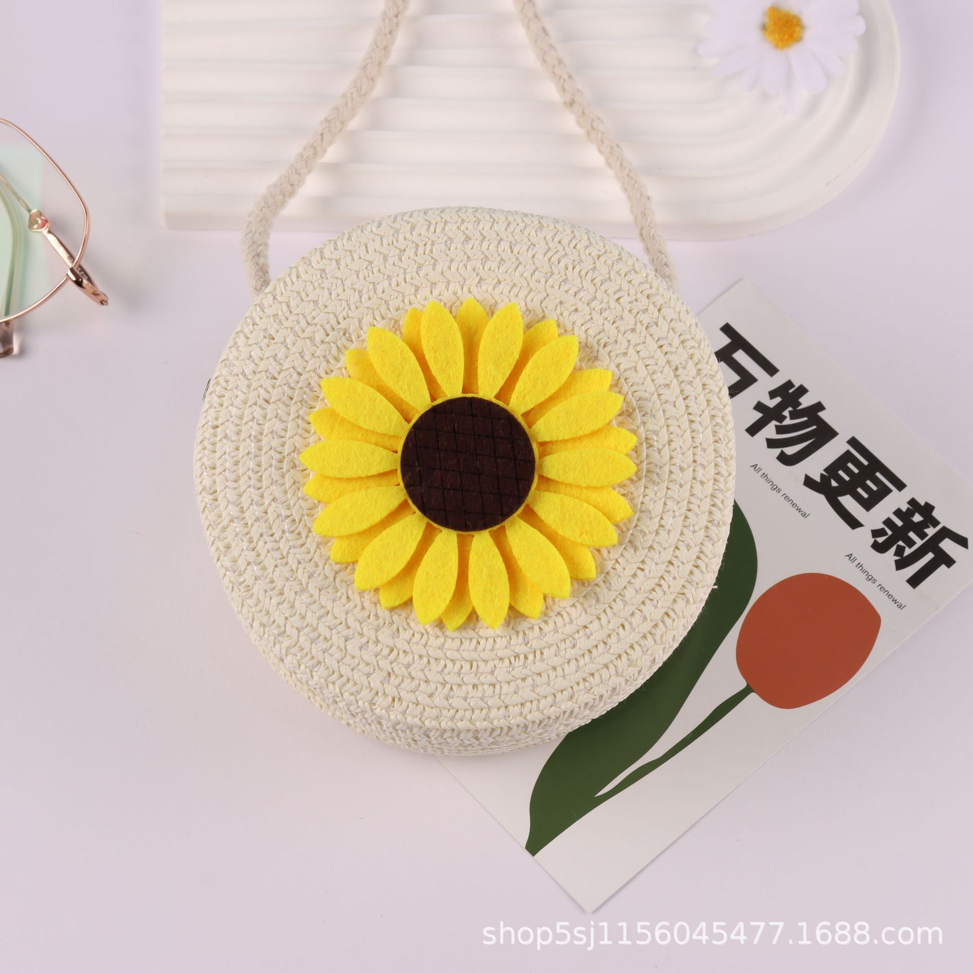 | nameOriginal | Children's Woven Straw Crossbody Bag Flower Cute Mini Girl Fashion Princess Backpack Small Span Bag |