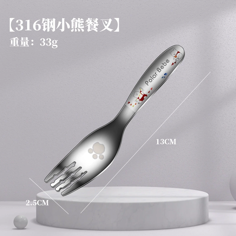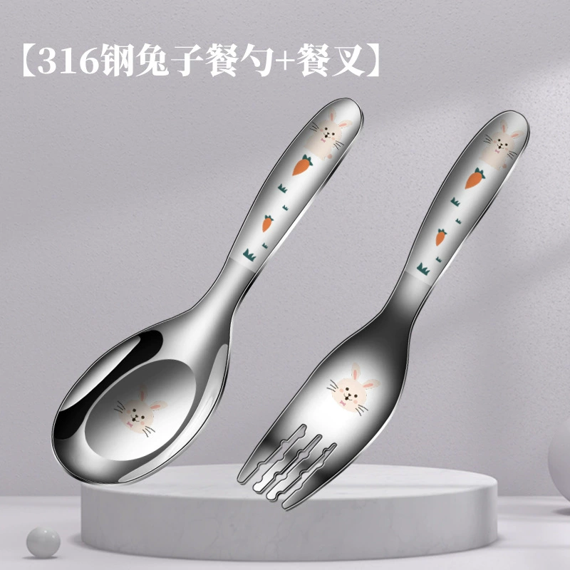 | nameOriginal | Children's Yuanbao spoon stainless steel food grade 316 baby eating spoon cartoon household spoon and fork set |