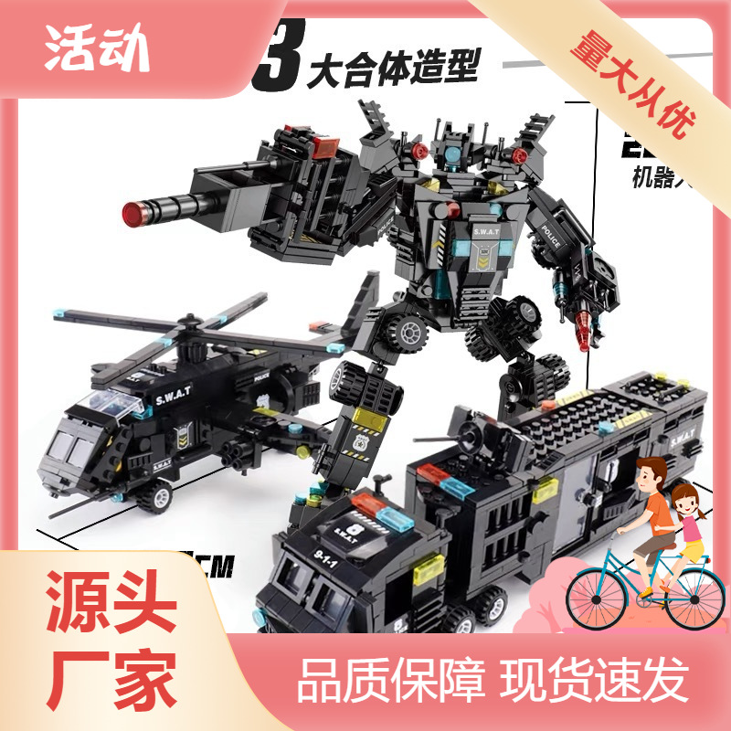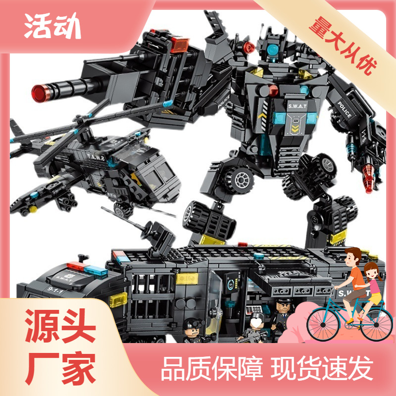 China Building Blocks SWAT Boy Assembled Car Toys Children Small Particle Deforming Robot Movable King Kong Puzzle