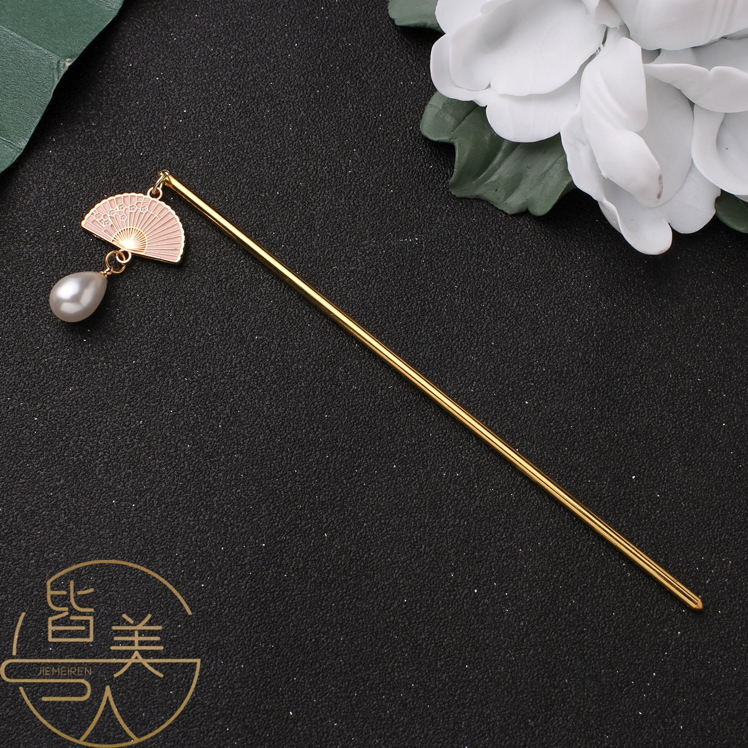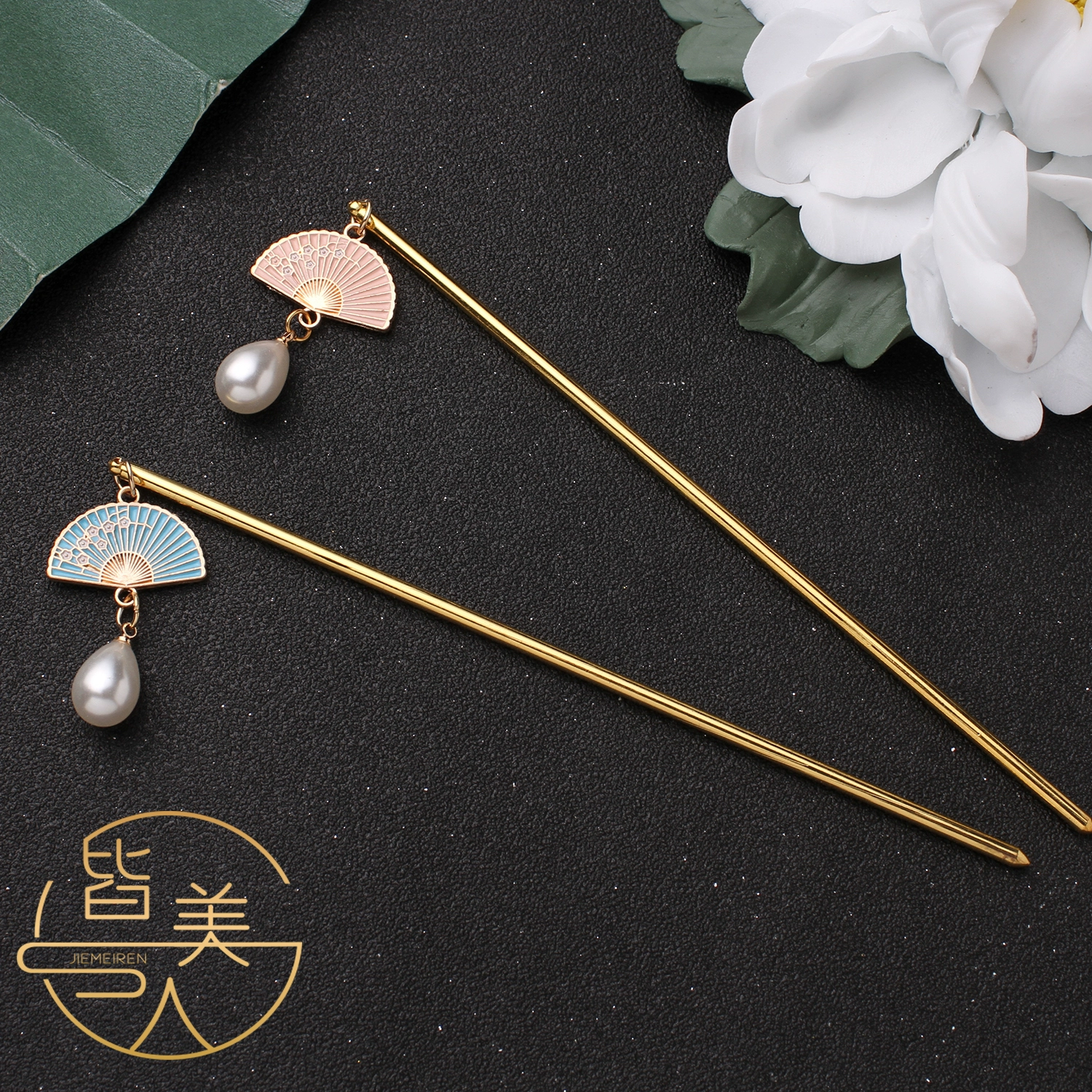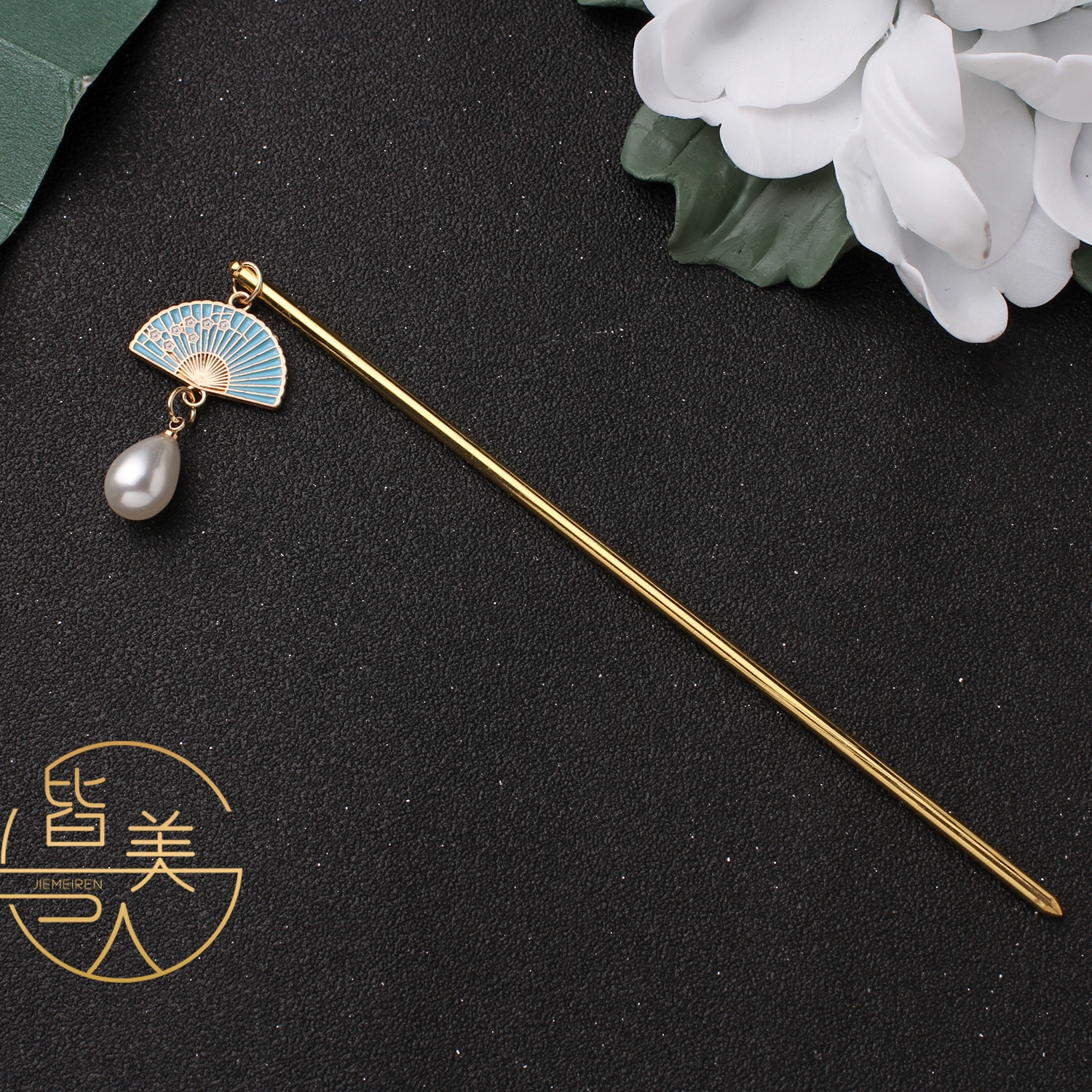 | nameOriginal | Chinese ancient fan hairpin modern simple ball head Hanfu girl sweet super fairy hair metal hairpin |