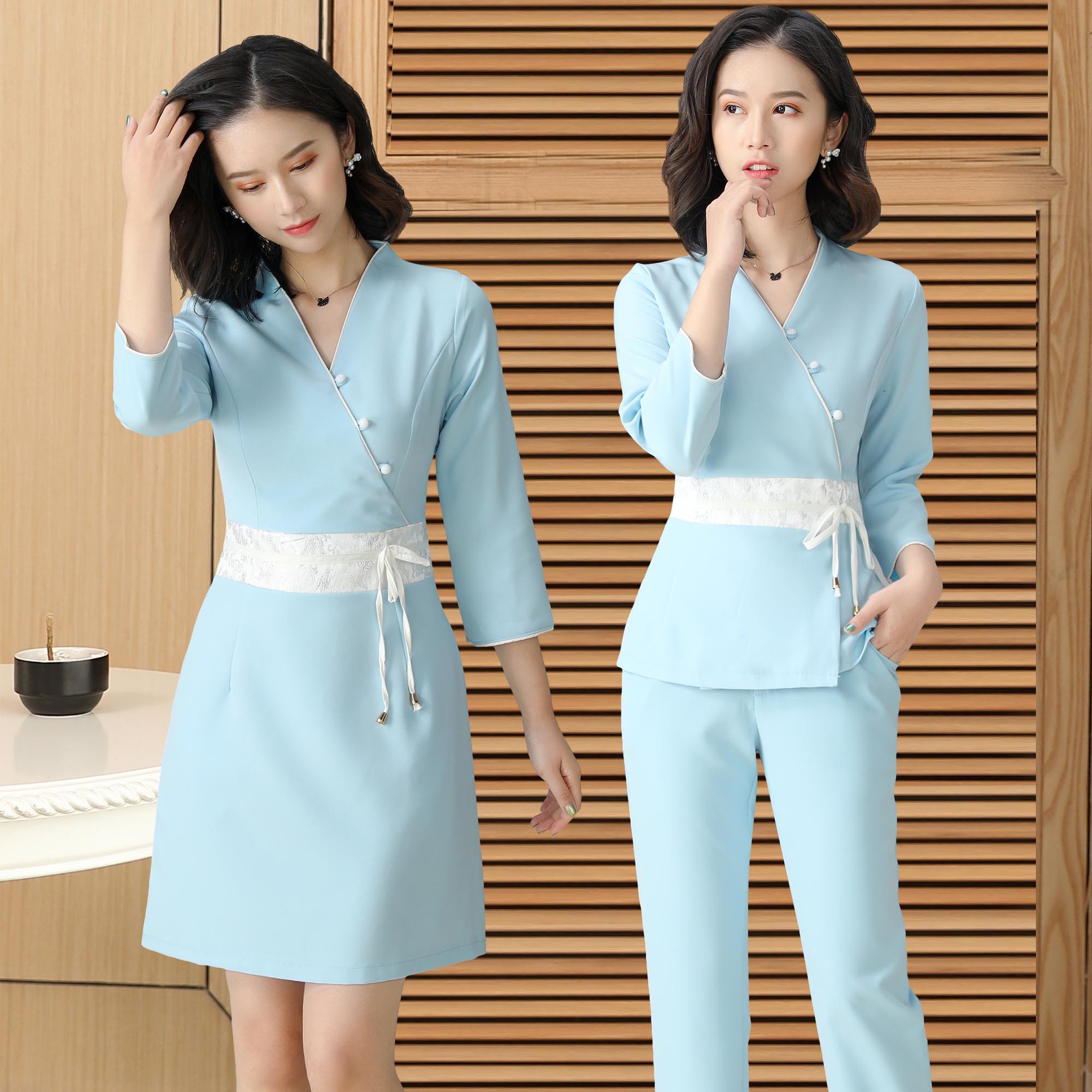 Chinese beautician work clothes Women’s Health Center Chinese suit fashion hotel massage foot massage pedicure technician clothes Winter