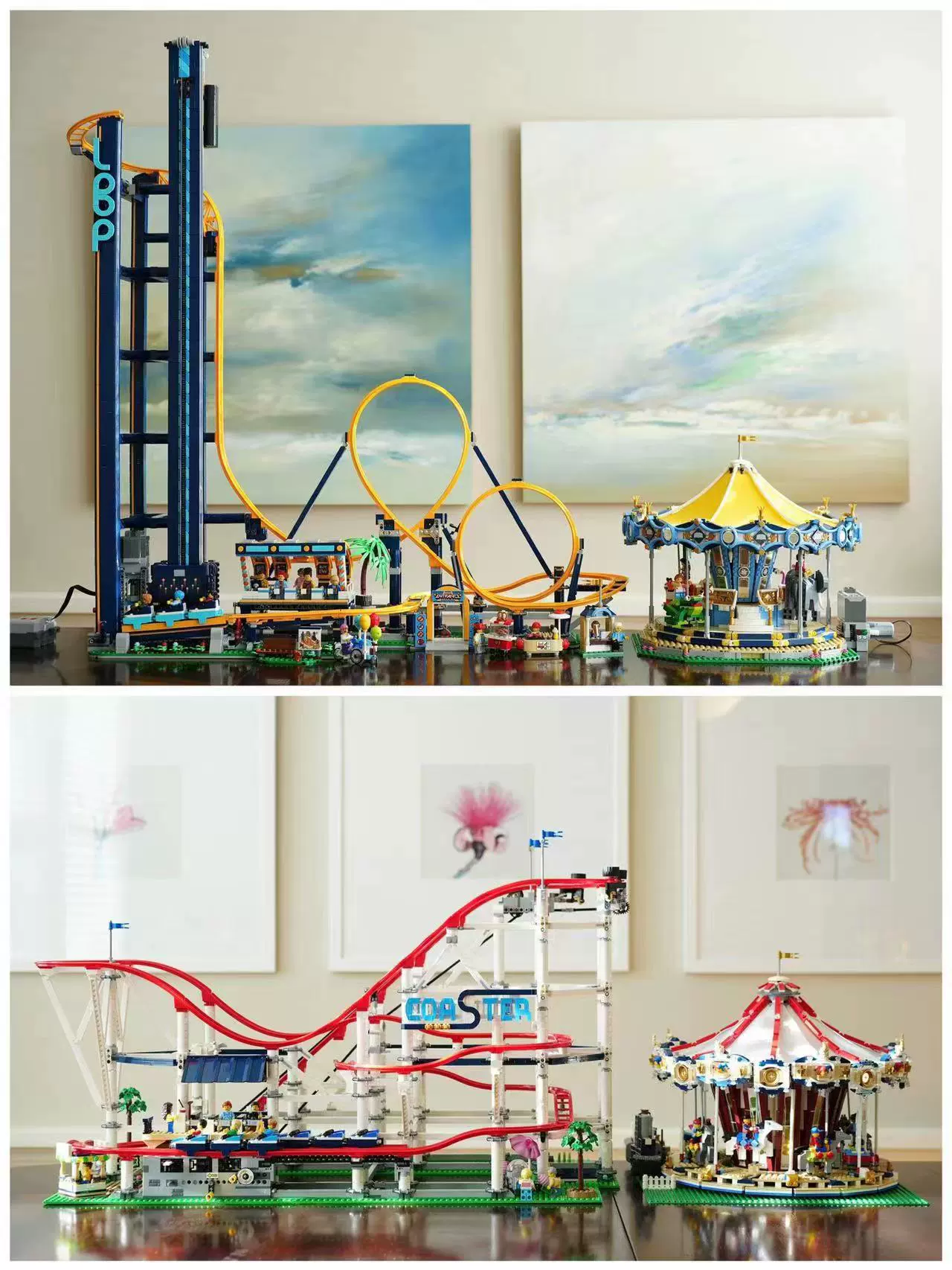Chinese building block vertical tumbling roller coaster amusement park difficult Yile huge model boys and girls assembly toys