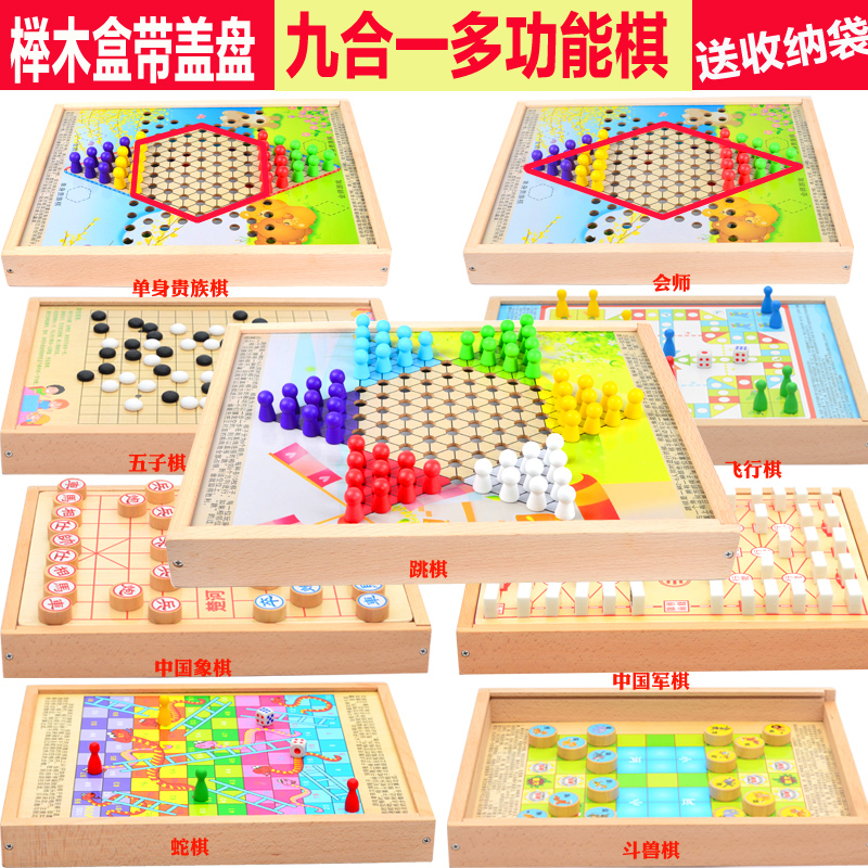 Chinese Chess Solid Wood Flying Chess Children’s Checkers Multifunctional Military Chess Gobang Chess Student suit Two in One