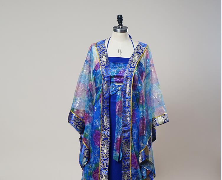 Chinese classical blue lace tulle Hanfu ancient costume costume film and television stage costume dress women’s skirt
