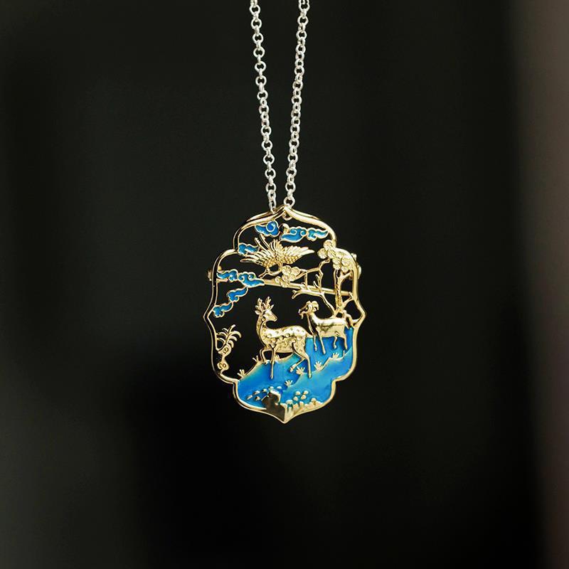 | nameOriginal | Chinese classical court design sterling silver retro natural Chinese style girl brooch necklace dual-use sapphire, |