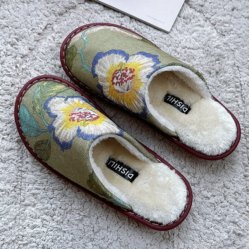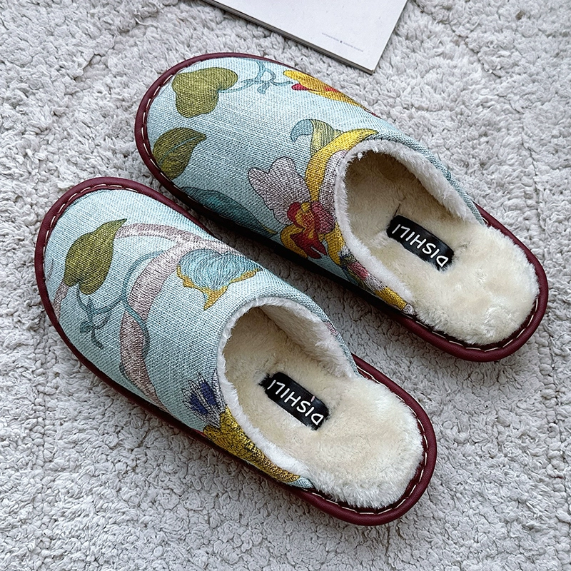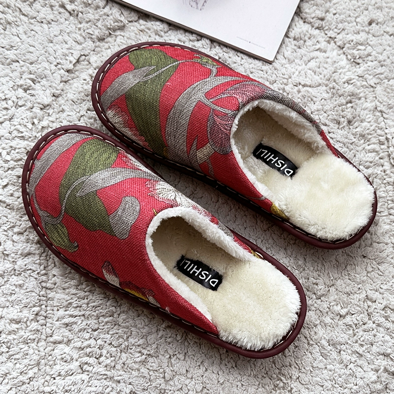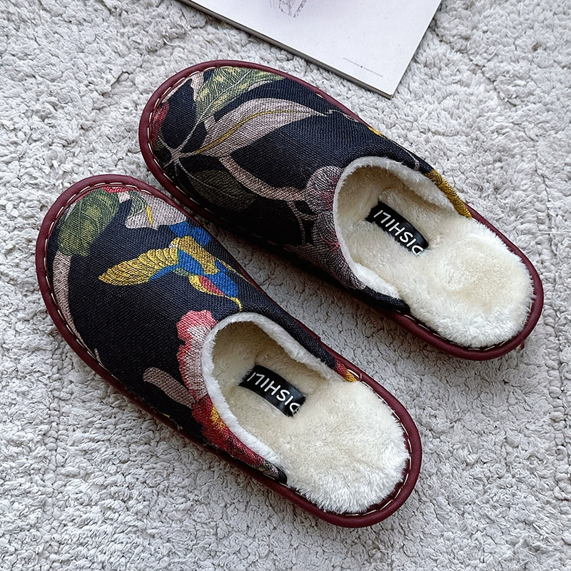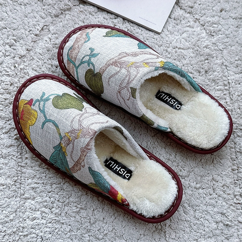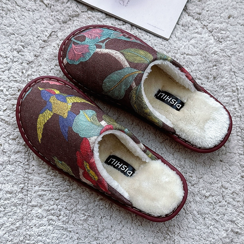 | nameOriginal | Chinese cotton and linen printed fabric cotton slippers for women's home wooden floor indoor couple's Baotou men's winter non-slip soft bottom |