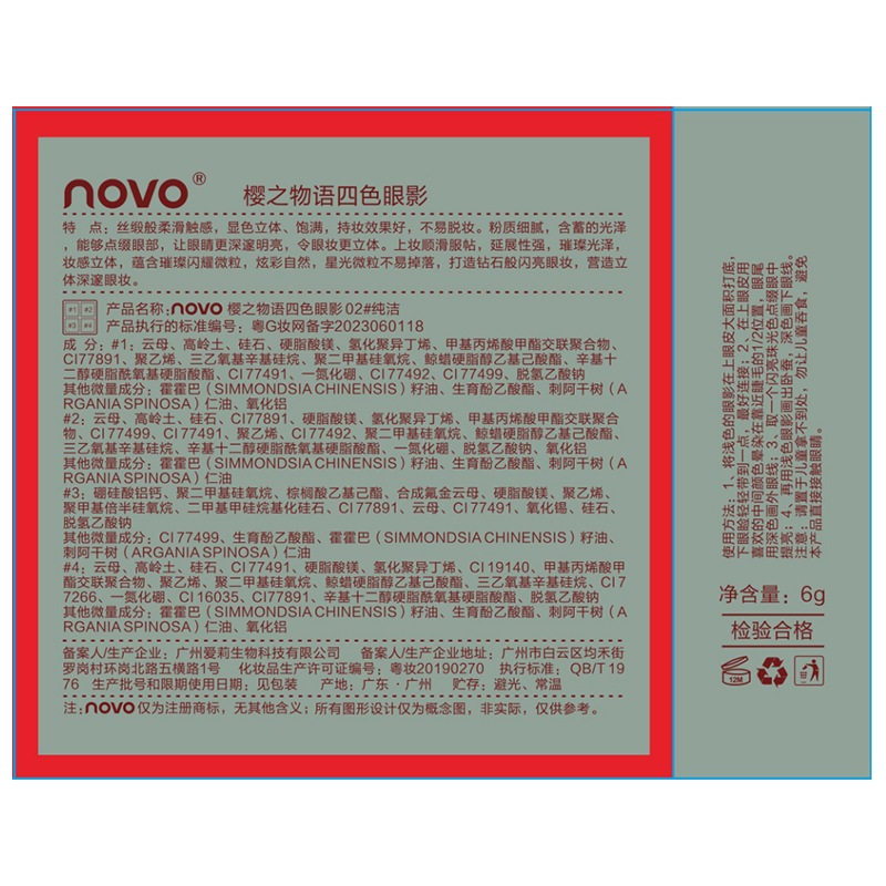 Chinese NOVO manufacturers four-color eye shadow female student party live Net red multi-color pearlescent earth color eye shadow plate wholesale