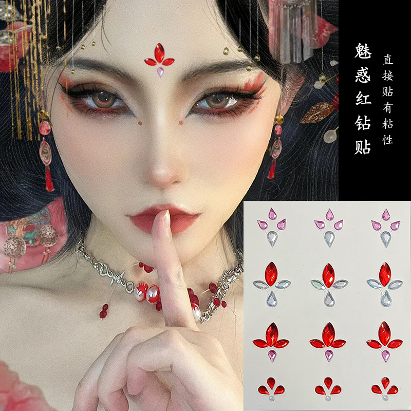 | nameOriginal | Chinese red ancient costume eyebrow heart beauty mole Imperial Concubine Guanyin Hanfu bride face studio photo acrylic diamond sticker |