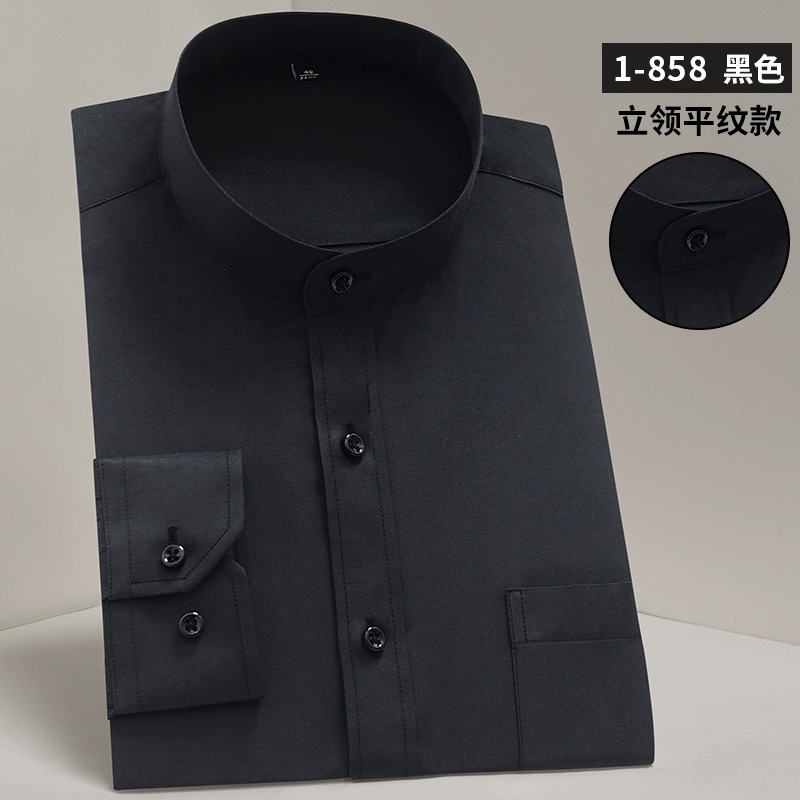| nameOriginal | Chinese stand collar burgundy casual slim long-sleeved shirt |