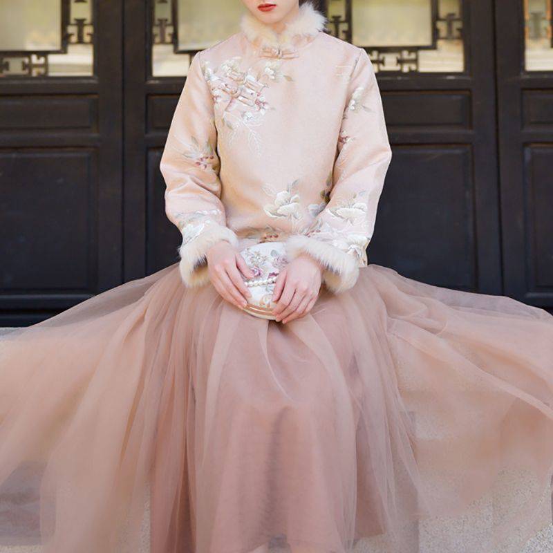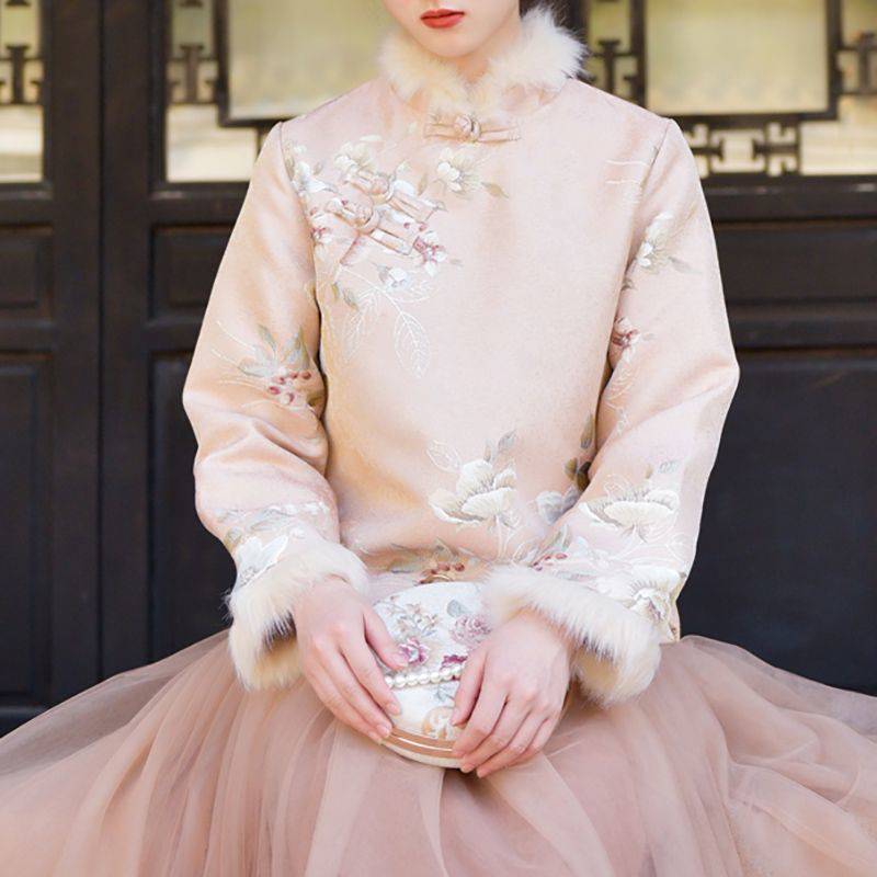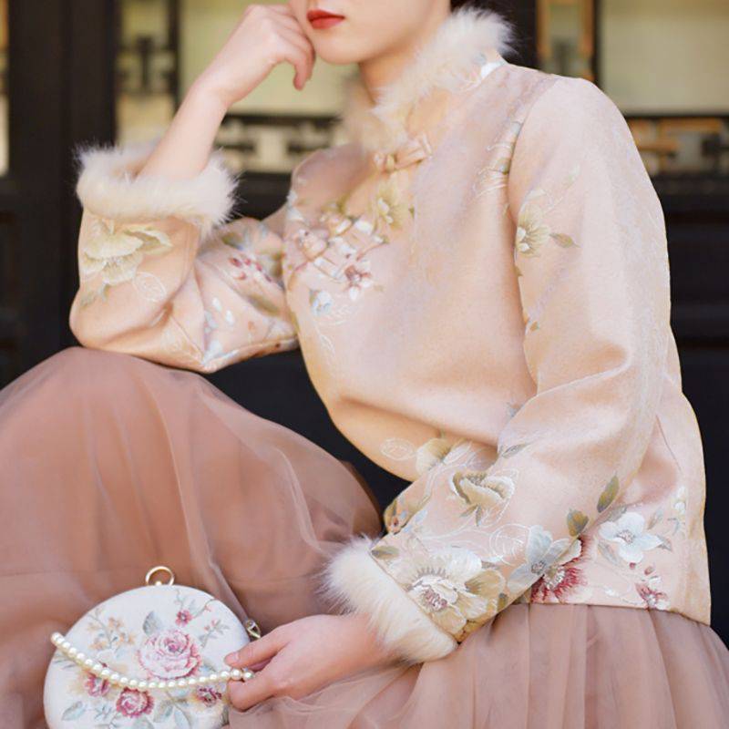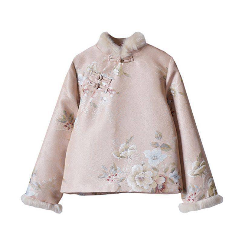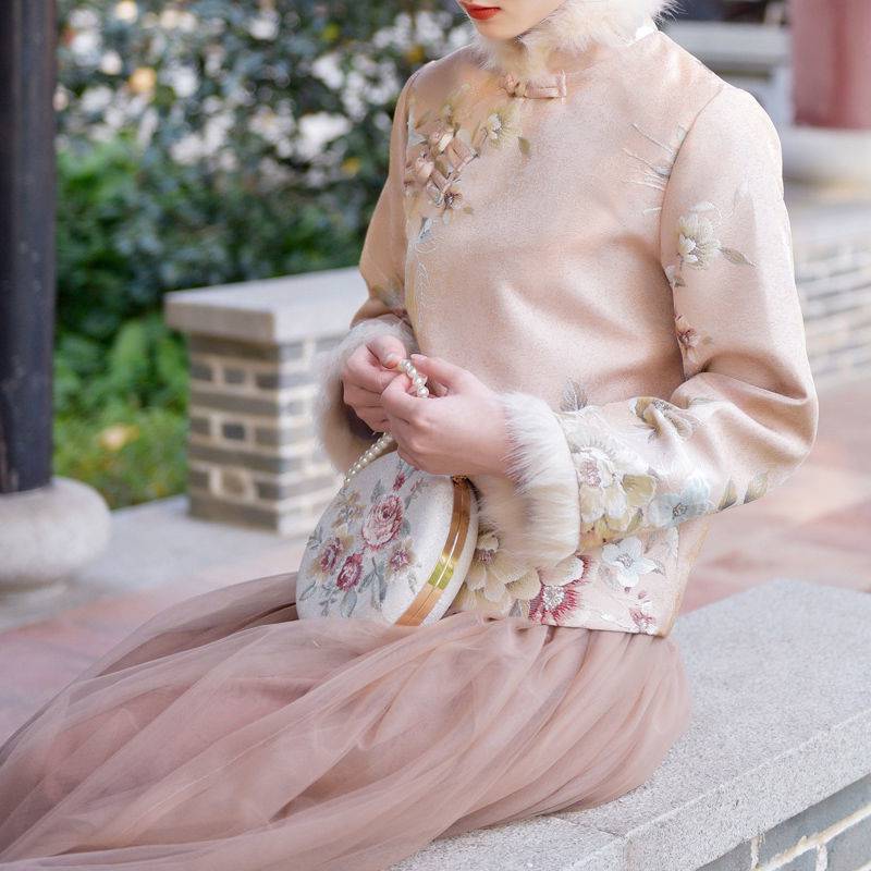 | nameOriginal | Chinese style autumn and winter New Year jacket improved cheongsam Western style girl's warm stitching fur collar printed coat |