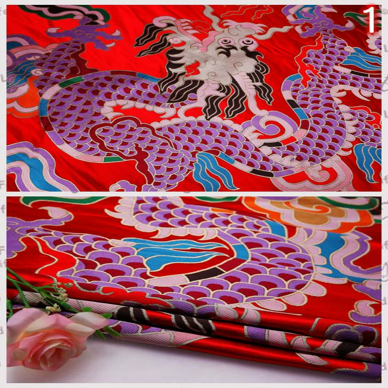 Chinese style brocade red background dark pattern jacquard kimono fabric