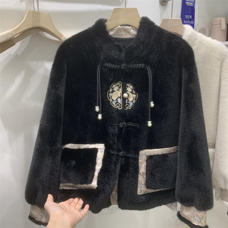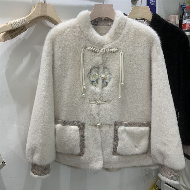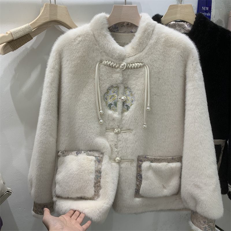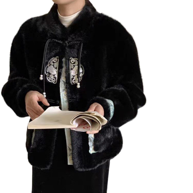 | nameOriginal | Chinese Style buckle fur women's vintage embroidered top 2023 Winter new Chinese style stand collar simulation mink fur coat |