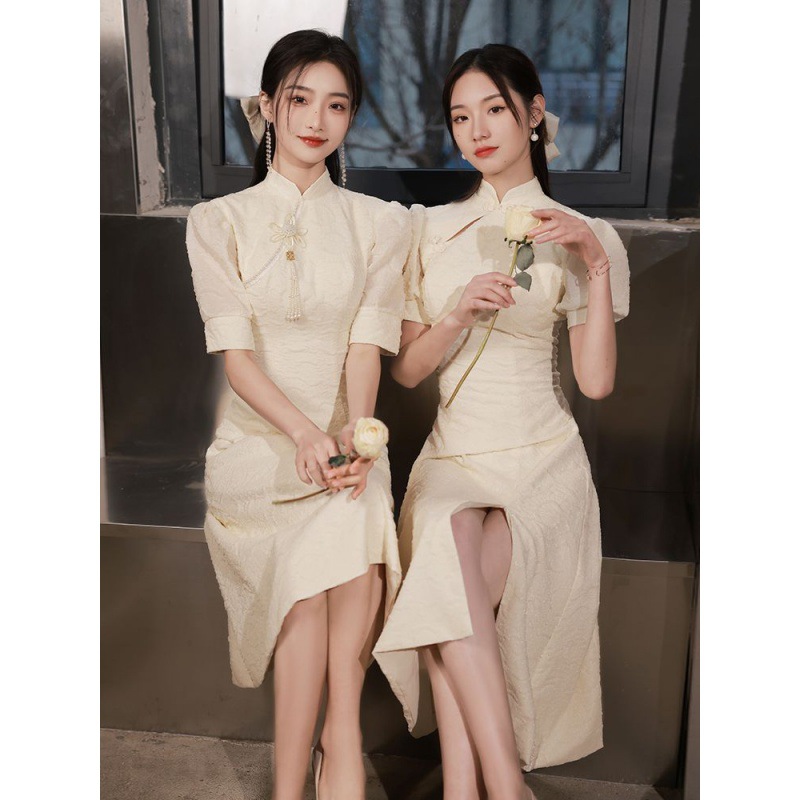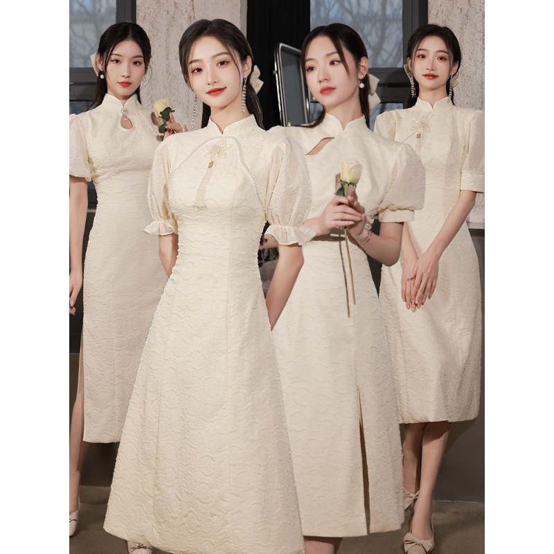 Chinese Style Cheongsam Bridesmaid Dress 2024 New Chinese Style Wedding Sister Group Evening Dress Dress Female Niche High-end Sense